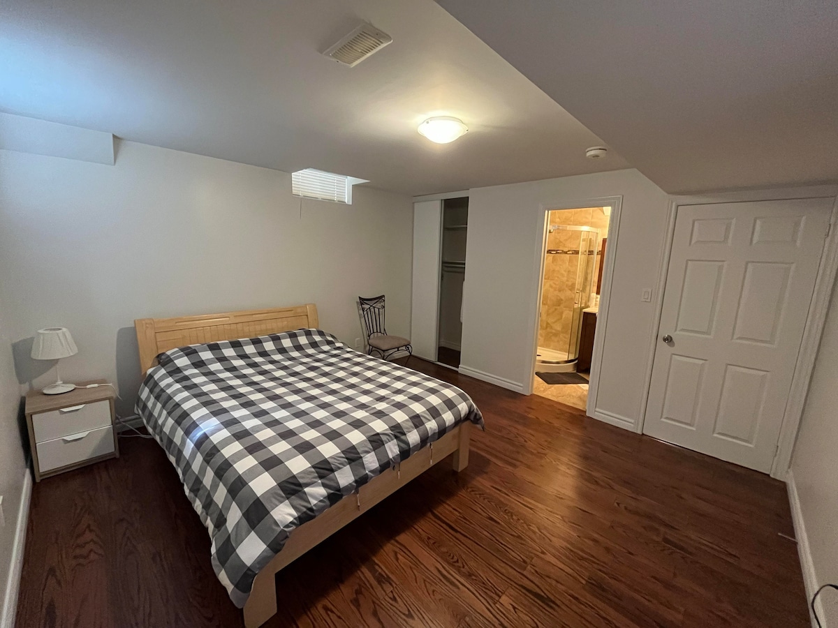 bienvenue dans votre maison confortable ! C'est une grande chambre rénovée toute neuve de 390 pieds carrés a son propre escalier et sa porte, avec salle de bain privée, lit king size serta icomfort ultime et un canapé-lit, il y a une caméra de surveillance au-dessus du garage et de la porte d'entrée, bonne pour un couple ou un voyageur solo, visitez ici pour profiter des sentiers, à quelques minutes à pied de Yonge St, Newberry Park wetland, Richmond Hill lycée, place commerçante, restaurants...