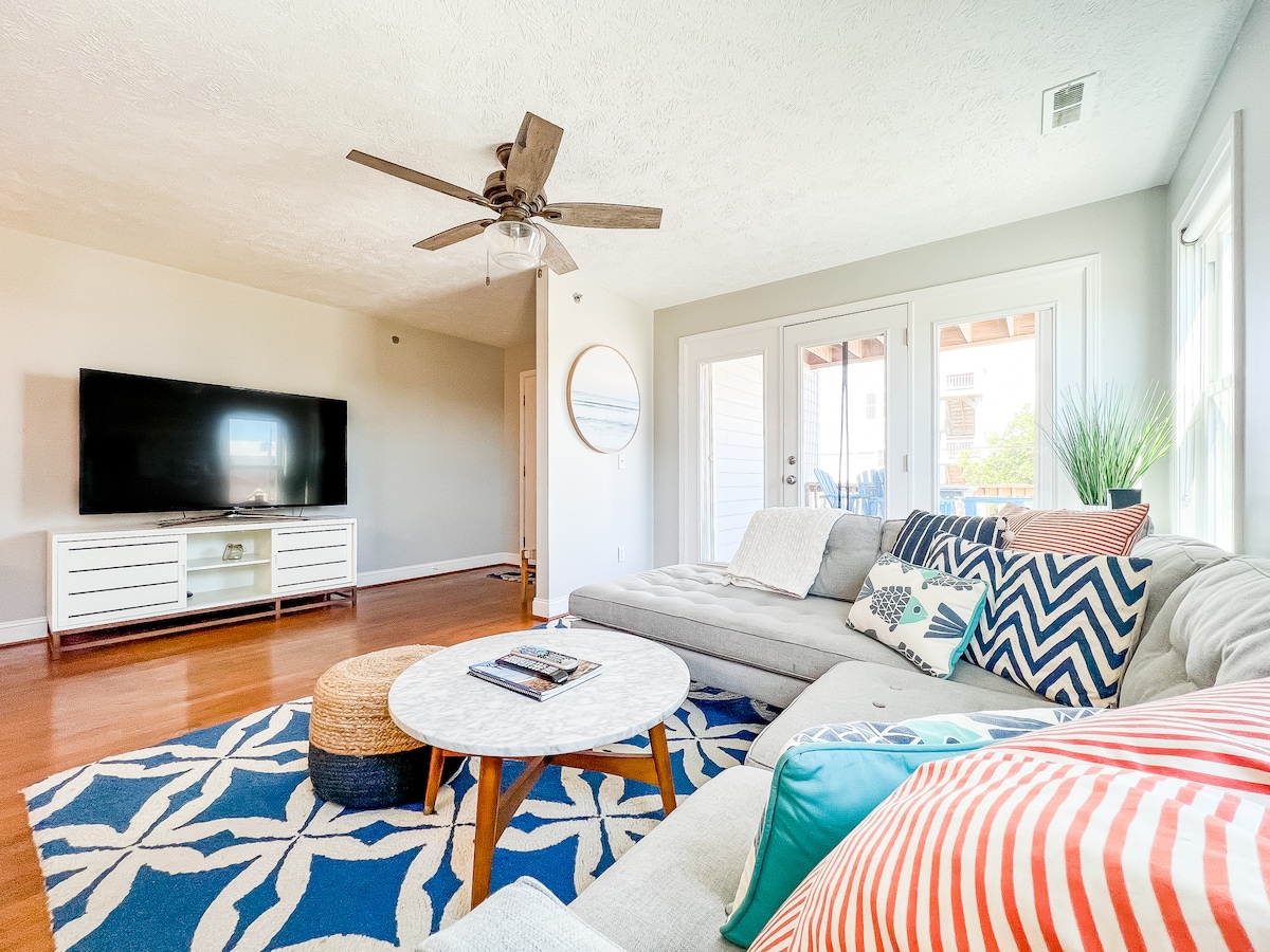 Condo moderne en bord de mer pour les familles situé à Topsail Dunes à North Topsail Beach. Au moment où vous monterez sur le balcon, vous tomberez sous le charme de la vue IMPRESSIONNANTE sur l'océan spectaculaire ici à Topsail. La décoration côtière de bon goût vous aidera à rester sur « l'heure de l'île » pendant que vous êtes ici. Passez vos journées et vos nuits à vous détendre avec vue sur l'océan ou descendez les marches pour profiter de la plage tout de suite. Nous espérons que vous voudrez revenir pendant de nombreuses années.