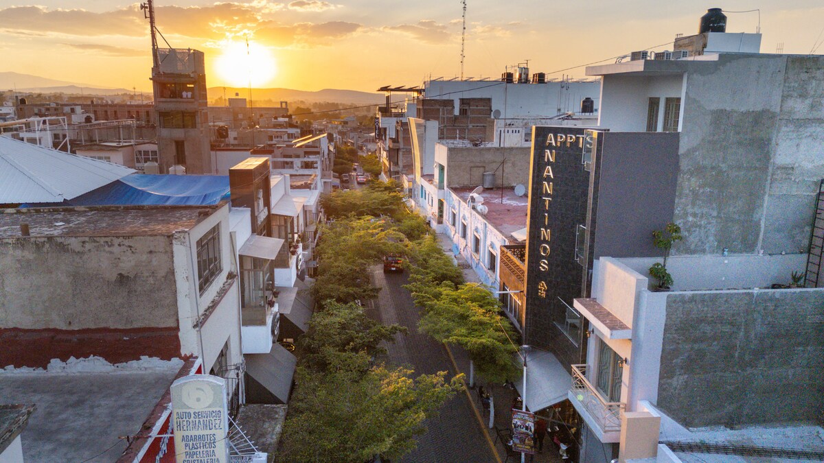Appartement moderne de 2 chambres et 1 salle de bain au cœur de la ville! À seulement 2 pâtés de maisons de la place historique et du temple, et à 50 m d'un bar local populaire. Situé au-dessus d'une épicerie de quartier pour une commodité ultime. Profitez de beaucoup de lumière naturelle, de la climatisation, de tout nouveaux appareils électroménagers et d'une entrée sans clé. Parfait pour les couples, les familles ou les télétravailleurs à la recherche de confort et de piétonnier dans un quartier charmant et historique de Jalisco.