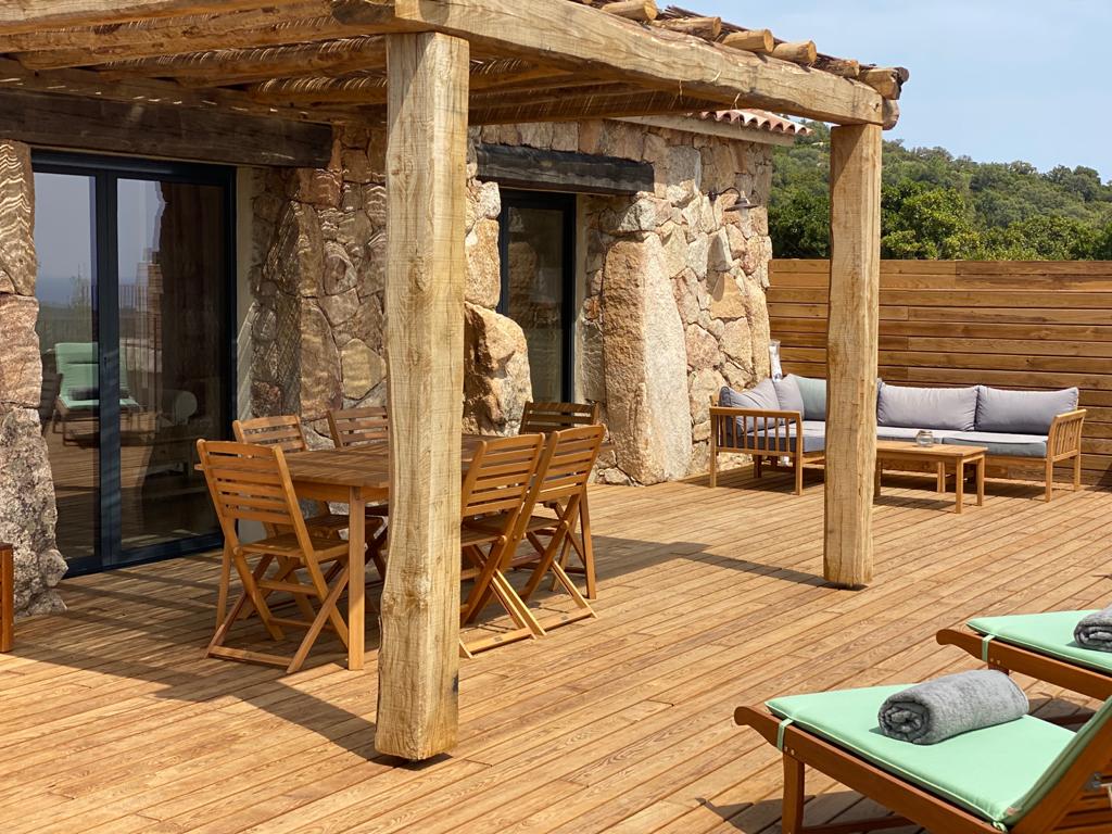 Magnifique caseddu tout équipé, sans vis a vis avec piscine privée en pierre de bali, grande terrasse et pool house, situé en plein milieu du maquis. Piscine chauffée hors saison d’été Idéal pour un couple et un bébé Tous les équipements pour un bébé sont disponibles sur demande. Lit parapluie, baignoire , chaise haute. C’est une bergerie neuve réalisée avec toute mon énergie et mon cœur Nous avons hâte de vous la faire découvrir et de vous accueillir. À très vite Steve et Eva