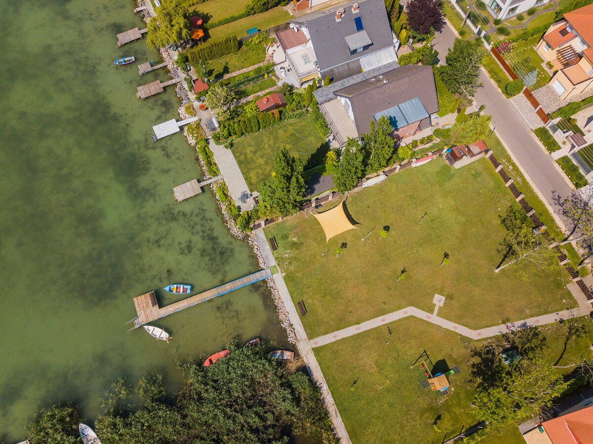 Expérience au bord du lac Balaton à Szárszó, terrasse et ponton.