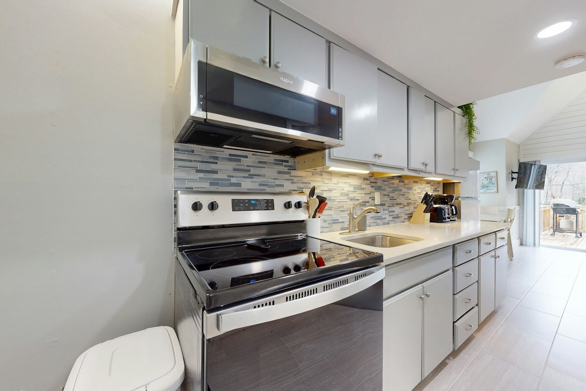 Faites comme chez vous à Loam Haus, un sanctuaire moderne niché dans les bois de la forêt nationale de Pisgah, à seulement 10 minutes du centre-ville de Brevard. Les vététistes viennent pour les 200 miles de sentiers à voie unique renommés et restent pour les couchers de soleil phénoménaux sur la terrasse à deux niveaux, le foyer au gaz, le hamac qui se balance, trois chambres ultra-confortables et un sauna relaxant. Vous préférez l'aventure à pied ? Les sentiers de randonnée autour de Loam Haus, au pays des cascades, sont tout aussi inoubliables. Réservez dès aujourd'hui !