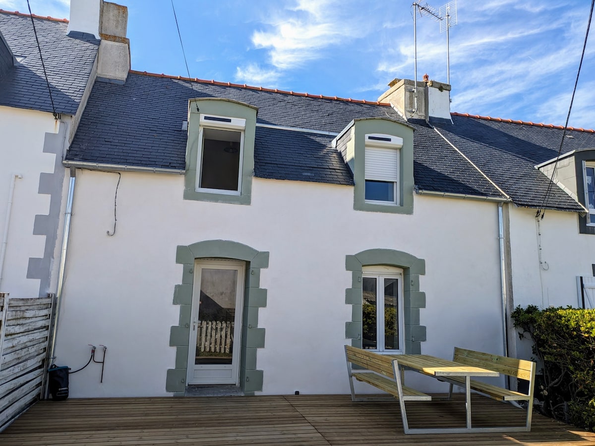 Maison bretonne de pêcheur rénovée typique et charmante, au calme dans une impasse. Elle est idéalement située, proximité plage (250m),commerces et port (100m),. La vie dedans/dehors de cette maison est très appréciée grâce à son jardin clos, sa terrasse et le mur végétal qui l'entoure. Elle accueille une terrasse exposée sud sur laquelle vous passerez vos soirées d'été autour du barbecue ou autre joli moment de détente. Posez vos valises et votre voiture, et faites tout à pied ou à vélo.