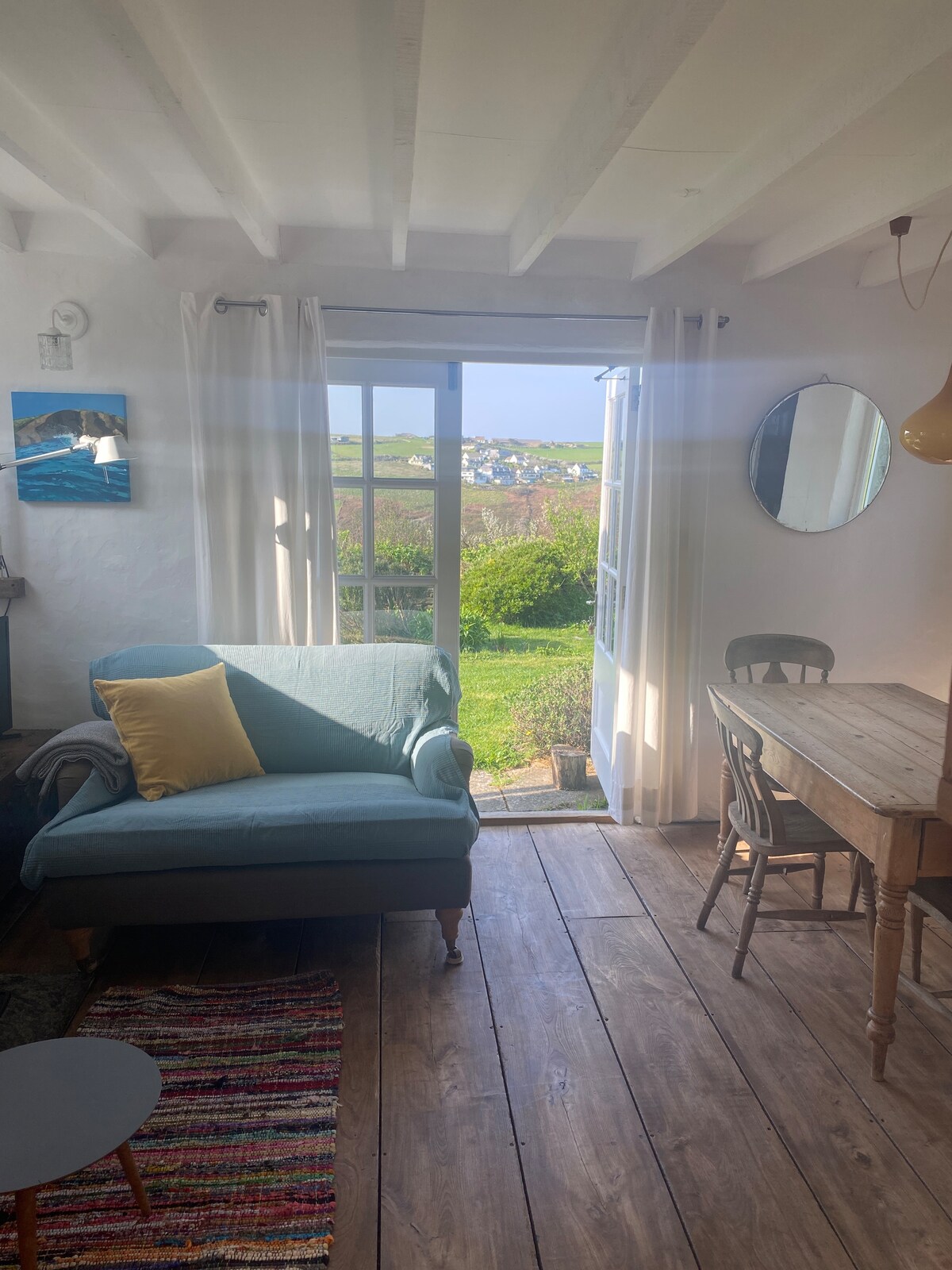 Notre maison de plage est étonnamment charmante ; ne vous laissez pas tromper par son extérieur légèrement balayé par le vent car vous entrerez et vous vous sentirez immédiatement chez vous. Il y a beaucoup d'espace pour tous avec une cuisine séparée, un coin repas et un salon ainsi qu'un joli petit jardin clos et privé. Ouvrir les terres agricoles devant et sur le côté de la maison et des aperçus de la mer depuis les chambres à l'étage ajoutent à la sensation d'espace. Il se trouve à 12 minutes à pied ou à 2 minutes en voiture de la plage et des commodités de Mawgan Porth.