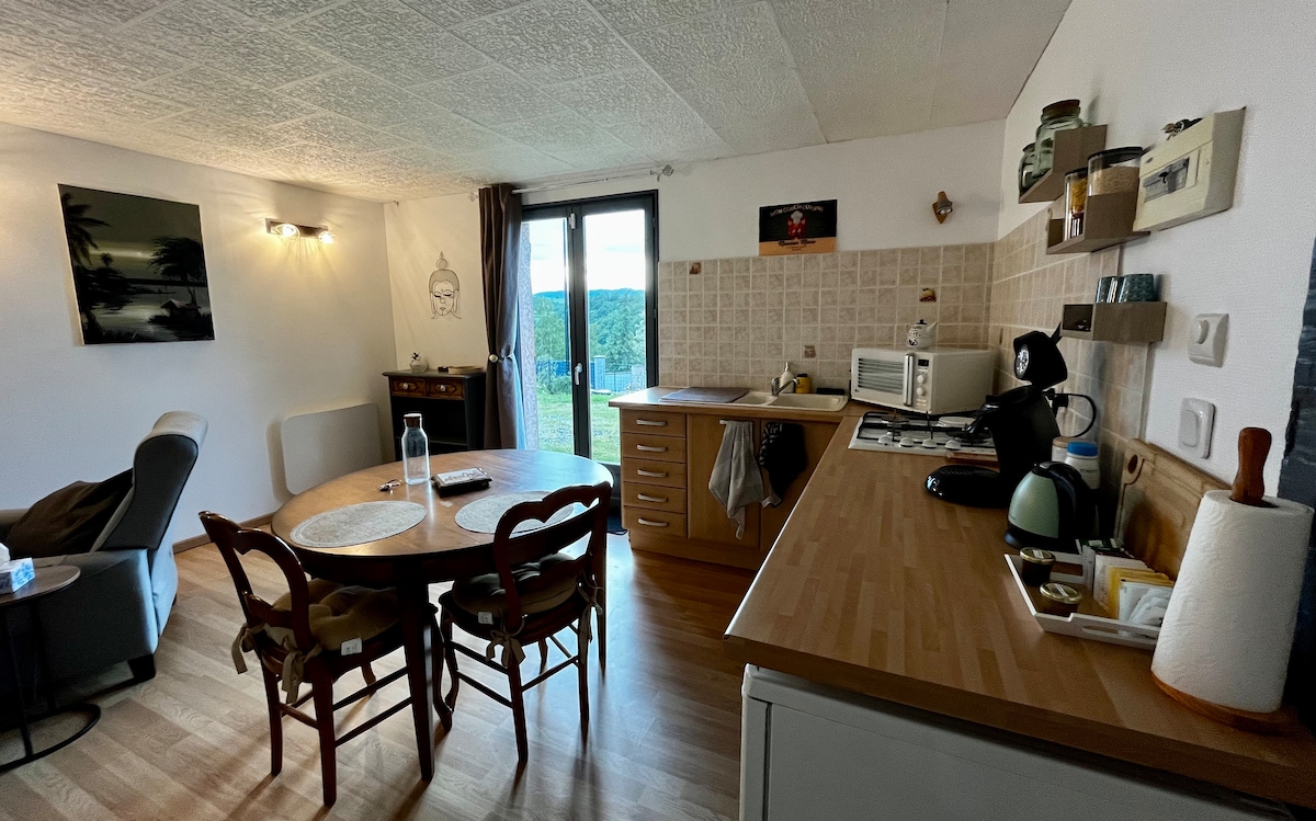 Au sein d'un petit hameau, grange rénovée et décorée dans un esprit rustique et artisanal vous séjournerez dans un espace de 60 m2 cuisine salon séjour et une grande chambre 20 m2 avec WC et salle d'eau attenante. Près de la nature vous pourrez faire de belles randos, ou vous détendre sur la terrasse avec un panorama superbe, un petit foot avec les enfants ou une pétanque avant l'apéro, c'est possible aussi. Grand terrain mais non clos, proximité d'animaux dans le voisinage.