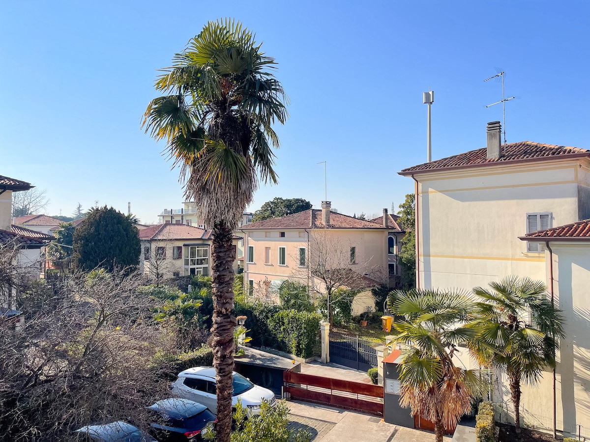 Profitez du Cottage of Roses, un élégant espace ouvert face aux anciens remparts de la ville. À seulement 1 minute de marche du centre et de la vie nocturne. Entrée privée, à côté de la maison des propriétaires mais avec une intimité totale. Jardin et serre disponibles pour se détendre ou dîner à l'extérieur. Petit déjeuner inclus : le réfrigérateur est rempli de tout ce dont vous avez besoin pour le préparer vous-même. Panier de bienvenue et minibar inclus. Buanderie gratuite à partir du 4e jour. Parking gratuit, 2 vélos et consigne à bagages. Venise est à 25 mn en train.
