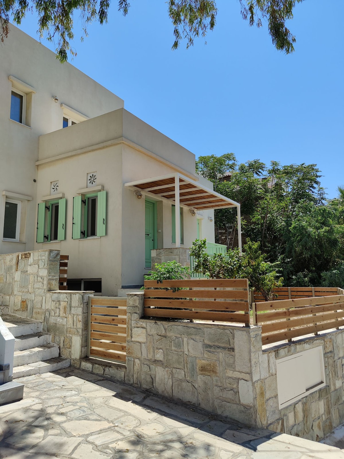 La maison a été construite en 1887 dans le village d'Arnados, un village construit en amphithéâtre qui surplombe les îles de Mykonos, Syros, Paros et Naxos. La maison est de 70 m² pour 4 personnes et a été rénovée en 2006-2008 en respectant tous les éléments architecturaux. Elle se compose de deux chambres (une avec un lit double et une avec deux lits simples), d'une salle de bain avec douche, d'un salon avec un canapé d'angle traditionnel intégré, d'une cheminée, d'une cuisine et d'une grande véranda de 70 m² avec vue panoramique sur les îles des Cyclades.