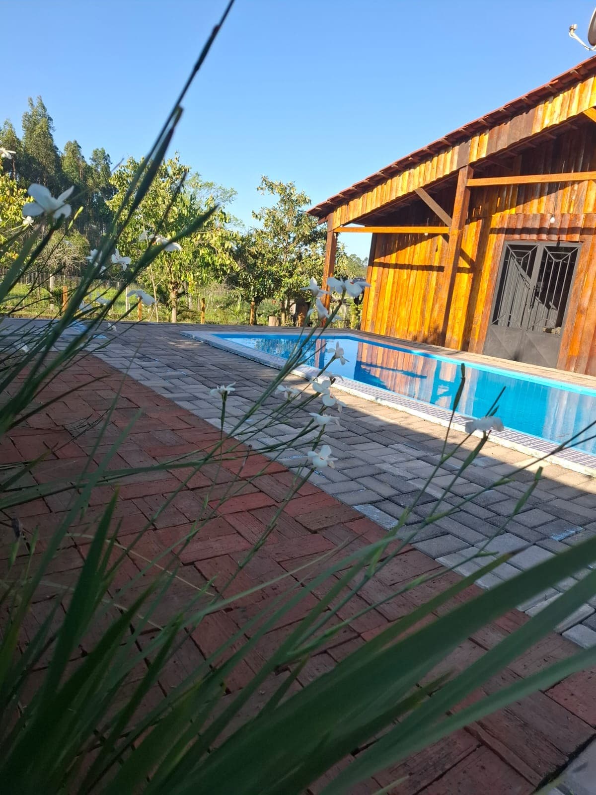 Maison simple et confortable à la campagne, en pleine nature, avec piscine, barbecue et cuisinière champion. À l'arrière, une zone forestière indigène avec bocha cancha et barbecue. Idéal pour ceux qui recherchent la tranquillité et le repos. Idéal pour les moments en famille ou les petits événements en plein air. Situé au Monténégro/RS, à 5 km de Velopark 28 km de l'aéroport POA 30 km de FIERGS 18 KM d'Expointer.