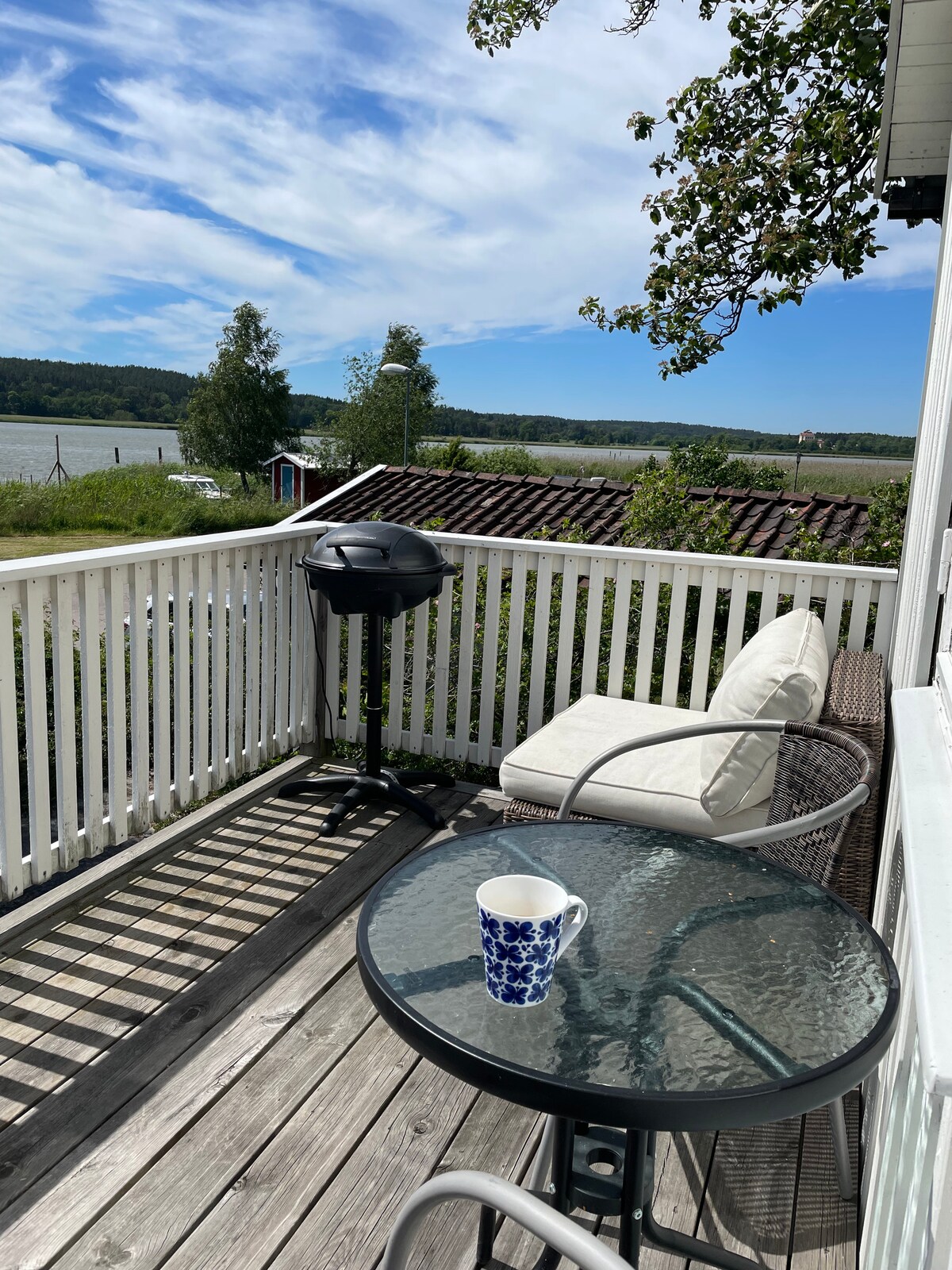 Ici, vous pouvez séjourner dans une maison directement au bord de la mer dans l'archipel de Stockholm. À seulement 30 minutes en voiture du centre-ville de Stockholm. La maison se compose d'une chambre avec vue sur la mer dans deux directions, dormez avec la fenêtre ouverte et entendez les vagues. Salon avec cuisine entièrement équipée, canapé et fauteuils. Terrasse dans deux directions avec le soleil du matin et du soir. Il y a une petite plage de galets directement adjacente à la maison, à 20 mètres de la maison, il y a aussi un sauna au feu de bois à emprunter. La jetée de baignade est à 100 mètres de la maison.