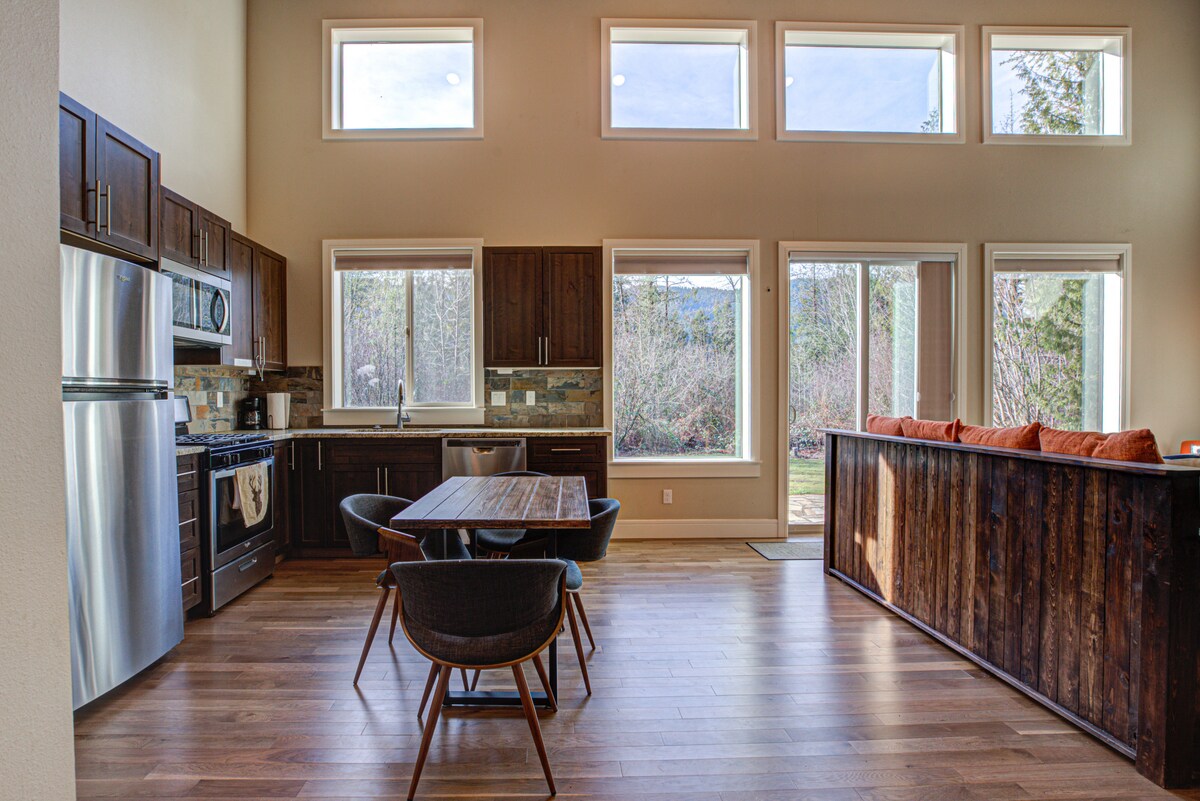 Détendez-vous et relaxez-vous au son de la rivière, dans cet espace serein et élégant, à seulement 28 miles de PDX. Admirez la beauté de la rivière et l'air frais sur le pont, faites de la randonnée ou traversez la rue pour une dégustation de vin. Restez à l'intérieur et détendez-vous près de votre feu de camp ou sortez pour une nuit en ville. Amenez vos amis, votre famille et Fido aussi. Profitez de la salle de jeux/bar à l'étage, avec un bar, air hockey, jeux vidéo et plus encore ! Reposez-vous, détendez-vous, ressourcez-vous, vous le méritez ! Ajoutez-nous à votre liste de souhaits dès maintenant, afin de nous retrouver plus tard !