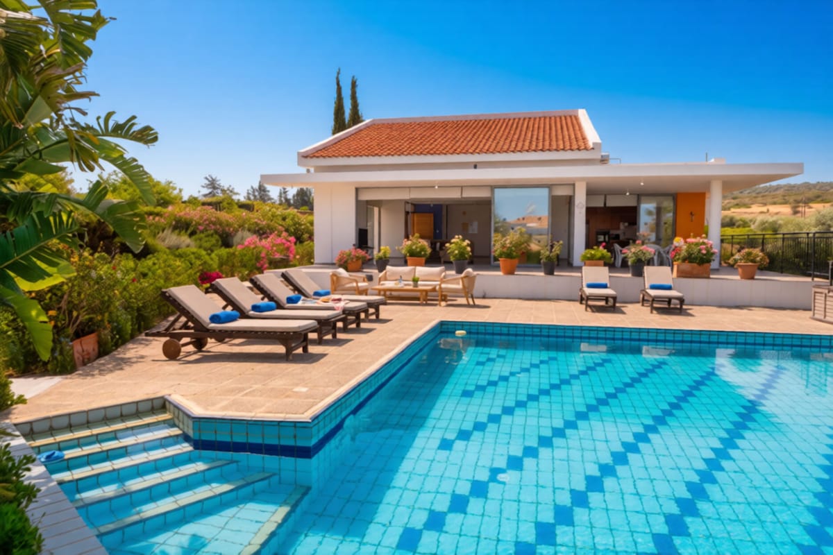 Niché dans les collines de Stroumpi, vous serez parfaitement positionné pour vous immerger dans le luxe pur et l'intimité qu'Aiora a à offrir. De l'arrivée au départ, nous restons à votre disposition tout au long pour vous assurer une expérience inoubliable. Plongez dans votre propre piscine privée pour une baignade matinale. Prenez la route à droite vers la ville de Paphos pour un accès facile aux restaurants et aux bars. Prenez la route sur votre gauche vers Polis pour nager dans des eaux cristallines ou explorer les villages environnants !
