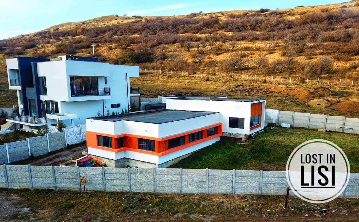 Notre villa écologique est située à 30 km du centre de Tbilissi, à 1 350 mètres au-dessus du niveau de la mer. Refuge parfait pour la paix, l'air frais et des vues imprenables, les jours clairs, vous pouvez voir le mont Ararat! La villa fait 108 m², avec 2 chambres, pour 4 personnes. Il y a un grand salon avec des fenêtres panoramiques, une cuisine entièrement équipée, des meubles confortables et un foyer électrique. Extérieur : un spa, un bain en bois finlandais, un sauna finlandais et un barbecue. On a aussi ajouté un haut-parleur et il n'y a pas de limite de bruit.