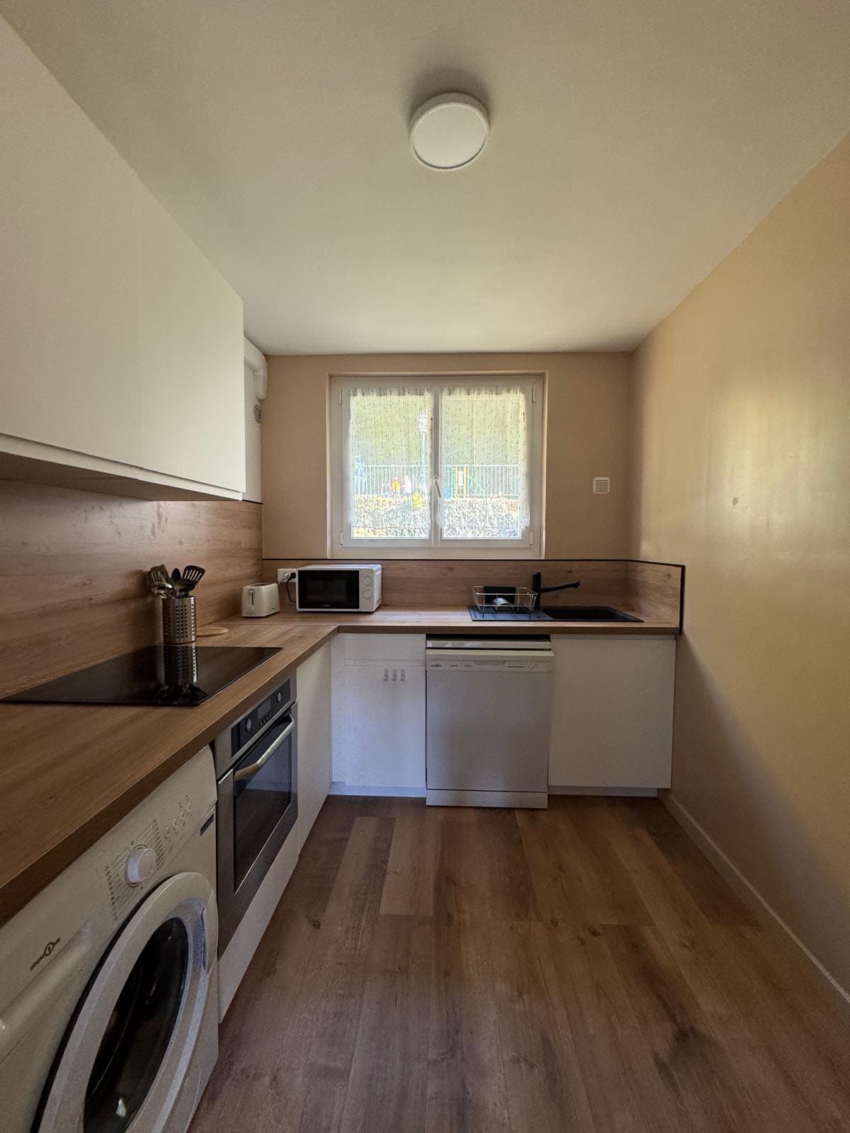 Appartement récemment rénové, à 5min à pied de la gare, au 5e étage sans ascenseur mais une fois en haut, vous retrouverez tout le confort possible. Vue exceptionnelle et très lumineux ! Pas de clim mais un ventilateur est dispo sur place ! Pièce de vie décorée avec goût, cuisine équipée (cafetière, bouilloire, four, micro-ondes, plaques à induction). Salle de bain avec douche à l’italienne, lave-linge et sèche-cheveux. 1 chambre spacieuse avec bureau, dressing.