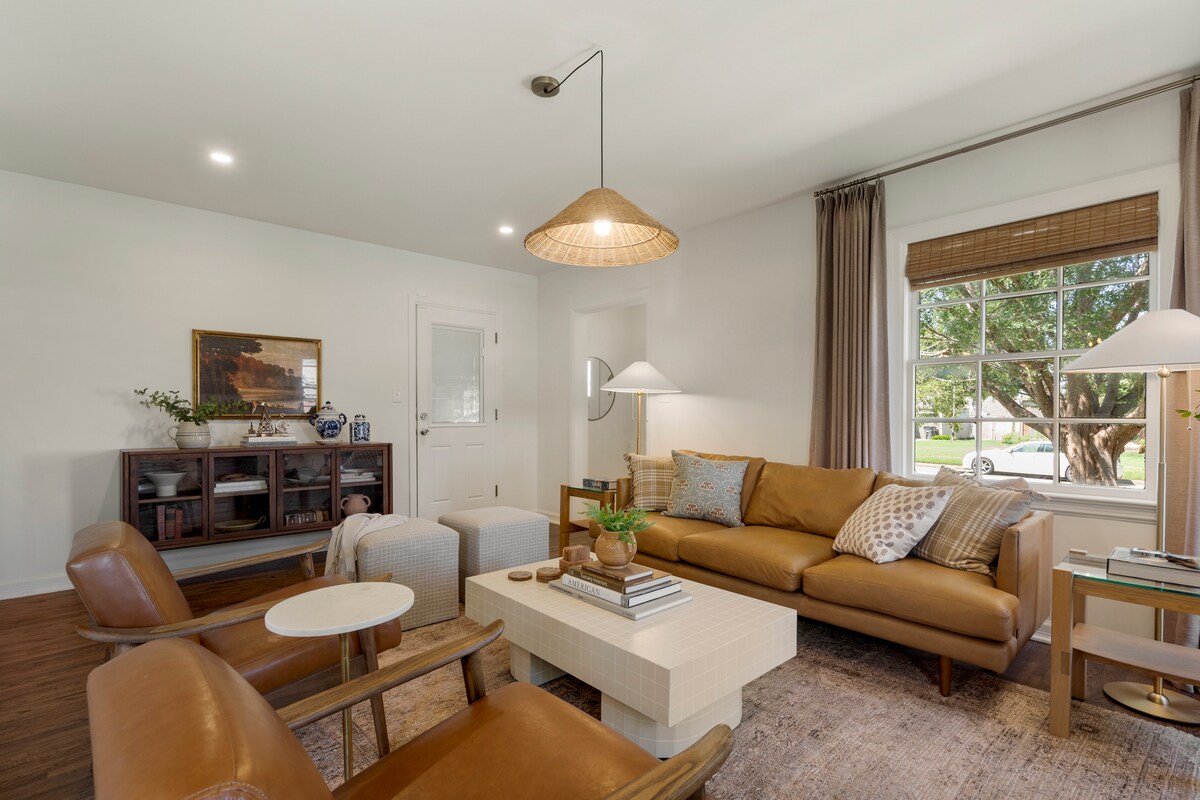 Détendez-vous et rafraîchissez-vous dans ce logement calme et élégant. Design haut de gamme et minimaliste avec une cuisine de chef impeccable. Linge de maison haut de gamme (Cozy Earth) partout, vraiment une expérience de boutique-hôtel avec des espaces extérieurs tranquilles ! Emplacement idyllique au centre-ville, niché dans le charmant parc Florence avec des arbres matures et des trottoirs. Accès facile à Cherry Street (2 minutes), Utica Square (3 minutes), Tulsa Fairground et Expo Center (4 minutes), Downtown/Art's District (6 minutes) et Riverside/Gathering Place (8 minutes).