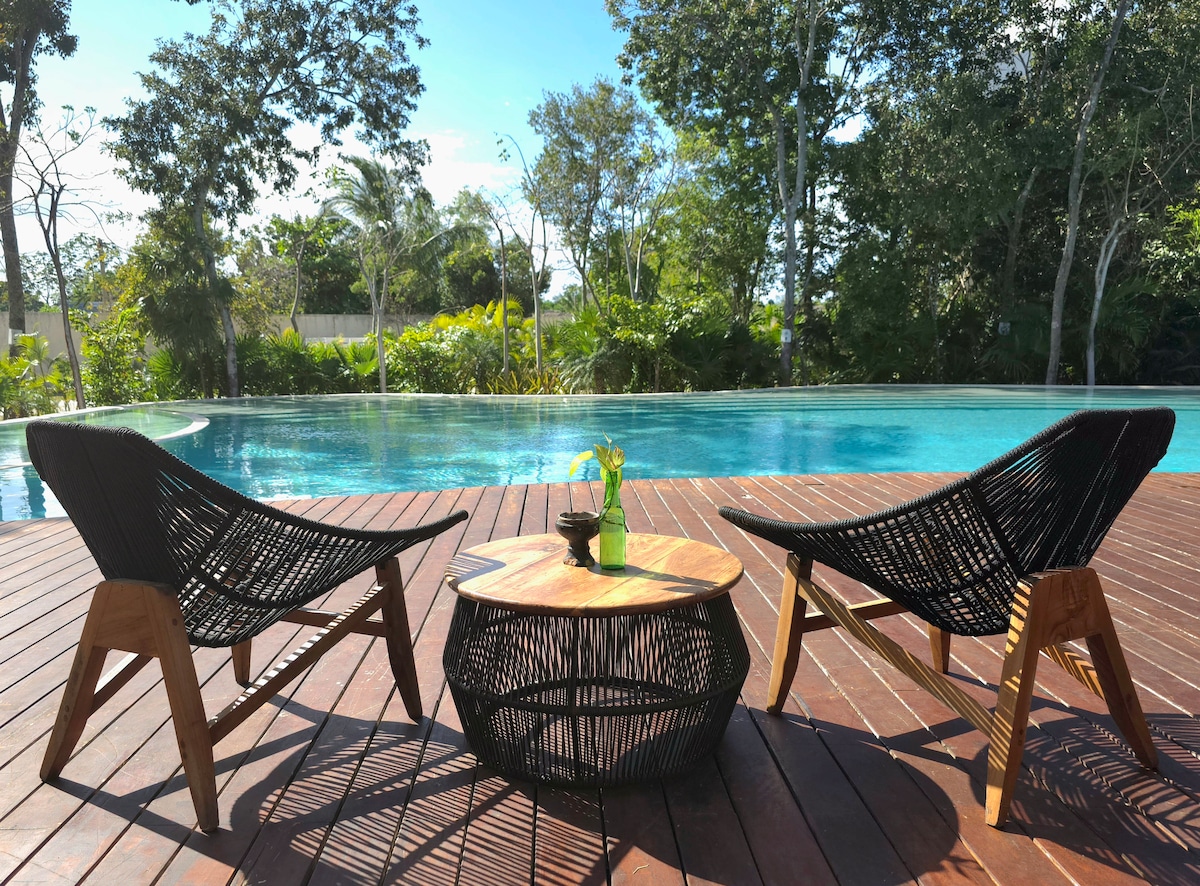 Loft de luxe dans la jungle • Vue sur les ruines • Piscine et terrasse