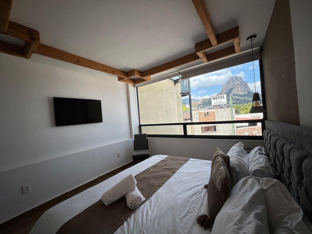 Le meilleur endroit pour séjourner dans le village magique de Bernal est notre bel appartement de deux chambres. Il a un design minimaliste qui mélange les matériaux et la flore caractéristiques de la région pour créer un environnement agréable qui sera toujours encadré par la Peña de Bernal, car il a été orienté pour avoir les meilleures vues sur le monolithe. Nous sommes en plein centre-ville, il est parfait pour se déplacer à pied. Nous avons une surveillance à tout moment et la meilleure terrasse.