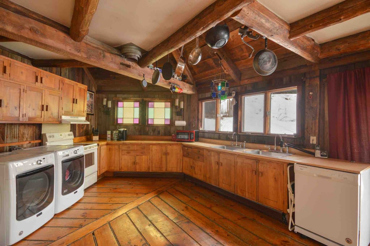Profitez de notre cabane en rondins impeccable, facilement accessible, située dans la nature sur 109 acres. Étang, bois et sentiers ; avec Internet haut débit et télévision connectée ! Peut accueillir 6 personnes avec deux chambres et un canapé-lit queen size. Cuisine entièrement équipée, y compris un grand réfrigérateur, un micro-ondes, une cafetière Keurig, des casseroles et des poêles, des ustensiles et de nombreux autres équipements. Vue depuis chaque pièce ! Explorez nos sentiers, utilisez notre yourte de méditation lorsque disponible en saison, trouvez la paix dans la nature ! En plein coeur du couloir de ski !