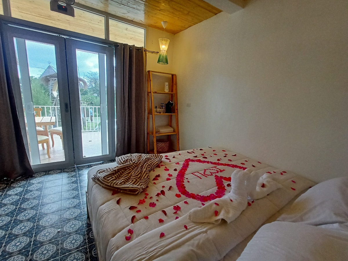 Parfait pour 4 voyageurs Réveillez-vous devant le balcon d'Aguho sur le majestueux mont. Matutum. Aguho est l'une des quatre cabanes de glamping de la ferme SG qui célèbre la richesse de l'art philippin à travers sa fresque murale de façade. La fresque est un motif textile créé par les femmes Yakan à Basilan, une île située dans l'archipel de Sulu aux Philippines. Les femmes Yakan sont connues pour le tissage qui a des motifs multicolores et géométriques.