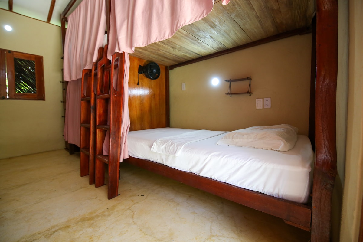 Cama individual en dormitorio compartido de 8 camas en literas, incluye desayuno del día. Cada espacio cuenta con cortina de privacidad, ventilador, luz y enchufe personal. Incluye sábanas y almohada; no incluye cobija, ni toalla. Dispone de locker con llave para tus pertenencias. Baño compartido con dispensadores de jabón, shampoo y papel higiénico. Sin WiFi en la habitación, disponible en zonas comunes.