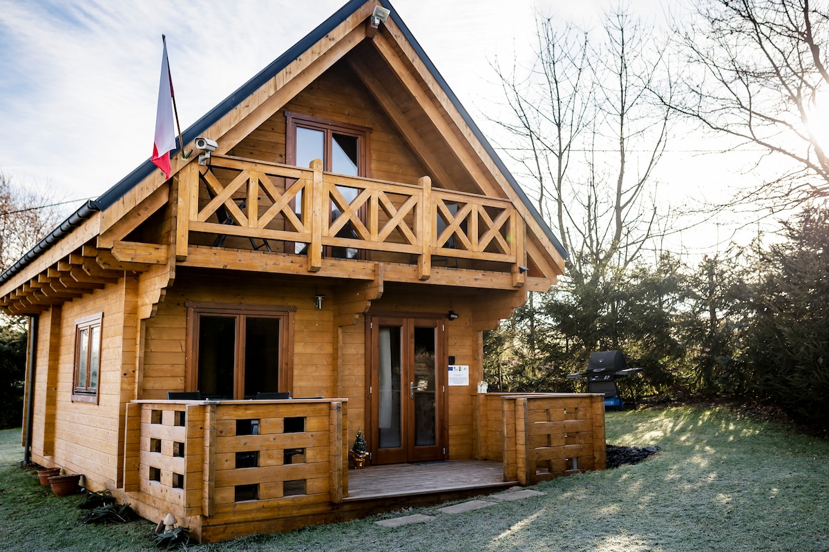 Nous vous invitons à la maisonnette ouverte toute l'année avec terrasse, emplacement pour feu de camp et barbecue. Le jardin est grand, partagé avec les hôtes. Nos chats, chiens et moutons marchent lentement et sont généralement les premiers à se précipiter pour accueillir les invités :) La propriété est ouverte sur la prairie et la forêt, où passe un sentier vert. Non perturbé par les lumières de la ville, le ciel nocturne est plein d'étoiles, et des bruits d'animaux sauvages peuvent être entendus dans les forêts environnantes.
