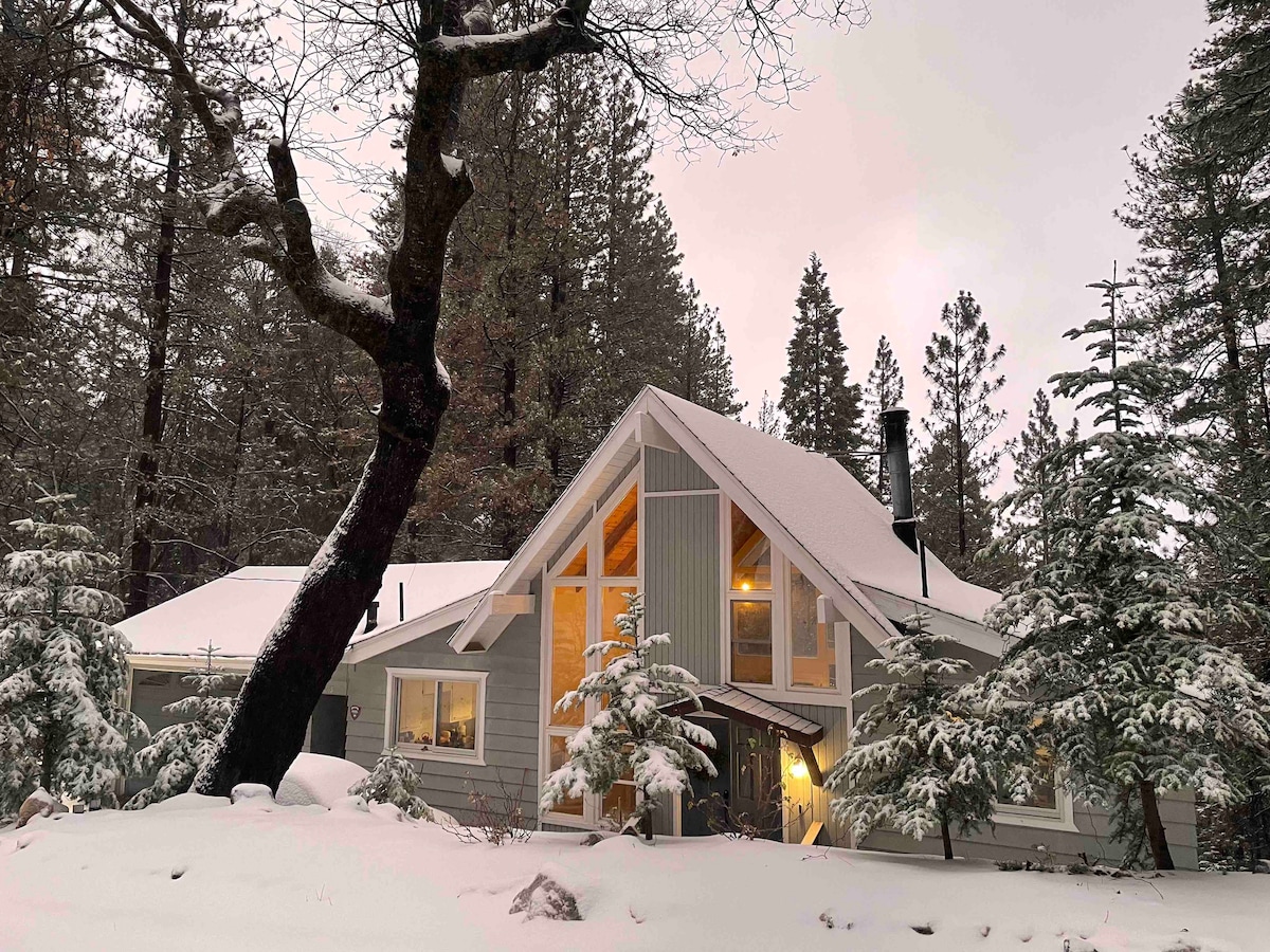 Cabane moderne en A dans les bois au bord du lac Arrowhead