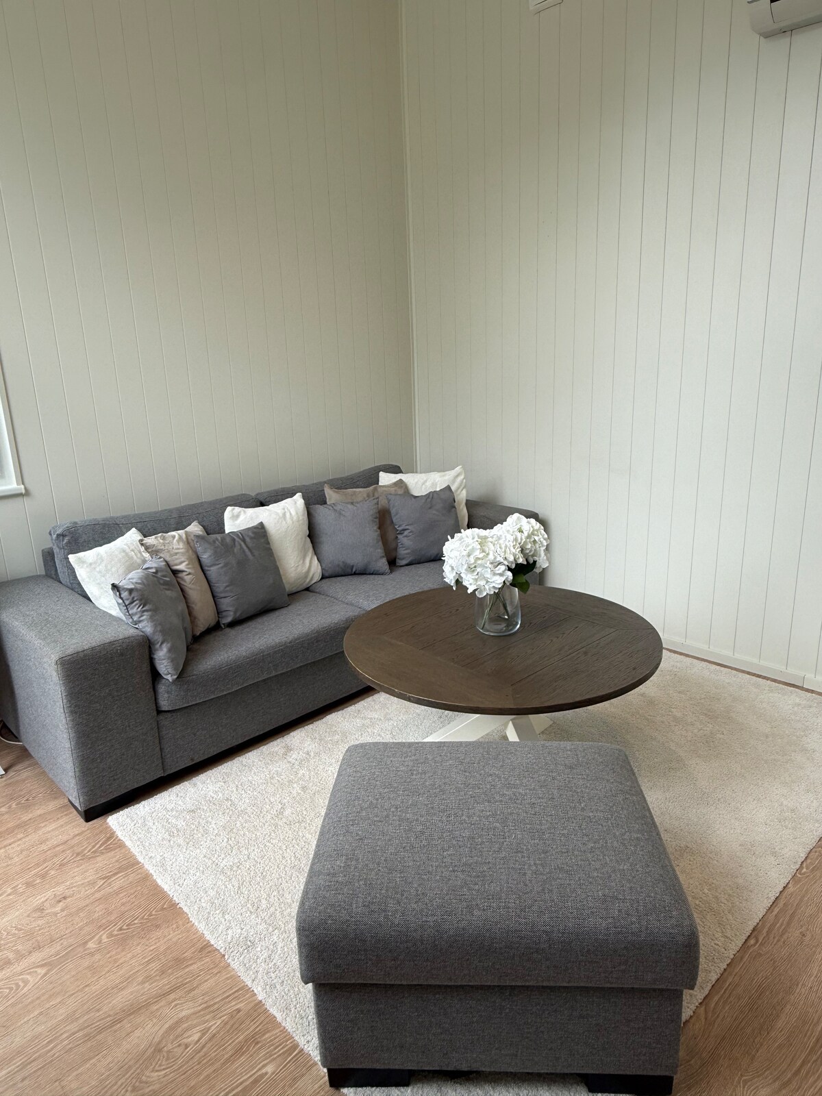 Micromaison de conception danoise avec une belle vue et une grande terrasse extérieure. À 5-15 minutes à pied de la plage, de la boulangerie, du restaurant, du supermarché, de la mini forêt et des bus pour Stockholm, le golf et le parc national. 25 m ² meublés avec amour ! - salon avec grand canapé confortable et lit gigogne de 150 cm - coin cuisine entièrement équipé avec table à manger/bar - chambre avec lit simple 105 cm - salle de bain avec WC, douche et chauffage au sol La maison est située juste à côté de notre propre petite maison jaune dans un quartier résidentiel sûr.