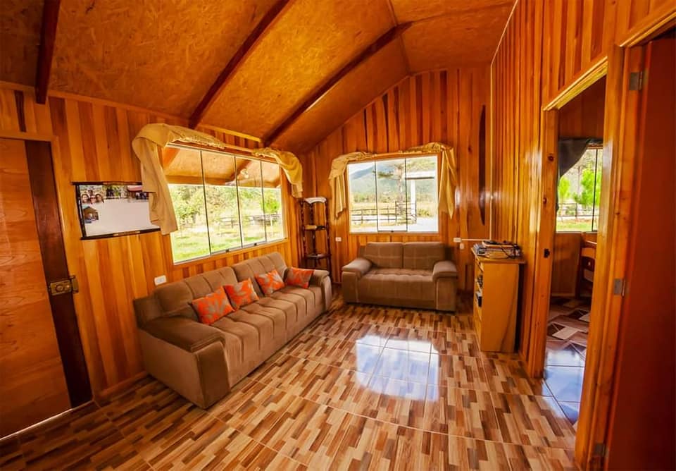 Le chalet est équipé de tout ce dont vous avez besoin pour profiter de la campagne avec la famille et les amis. Fabriquée avec du bois cyprès de reboisement, elle conserve le style européen des maisons d'Oxapampa et la chaleur d'être dans un environnement naturel.