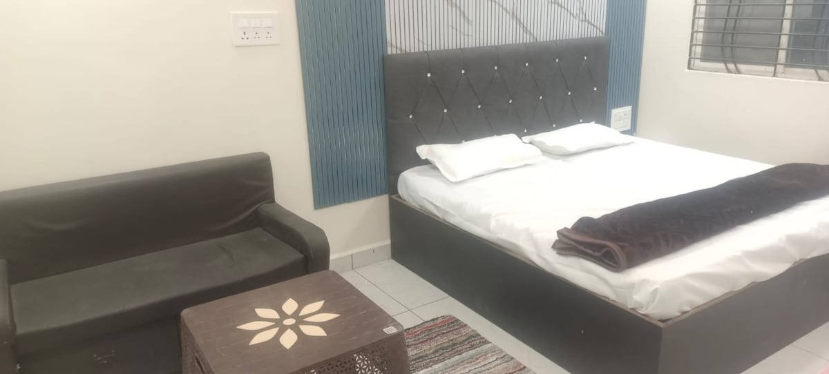 Profitez d'un séjour confortable dans cette chambre d'hôtel confortable, à quelques kilomètres de la célèbre gare de Mahakal Jyotirlinga et d'Ujjain, offrant un accès facile aux attractions locales. La chambre dispose d'un lit double, d'une salle de bain privée et de tous les équipements de base pour une expérience de détente. Situé à seulement 2 km de la station de bus, et avec des services de taxi disponibles pour l'aéroport d'Indore, votre commodité est notre priorité. Parfait pour les pèlerins et les voyageurs à la recherche de confort et d'accessibilité. AUCUNE PIÈCE D'IDENTITÉ LOCALE D'UJJAIN N'EST AUTORISÉE