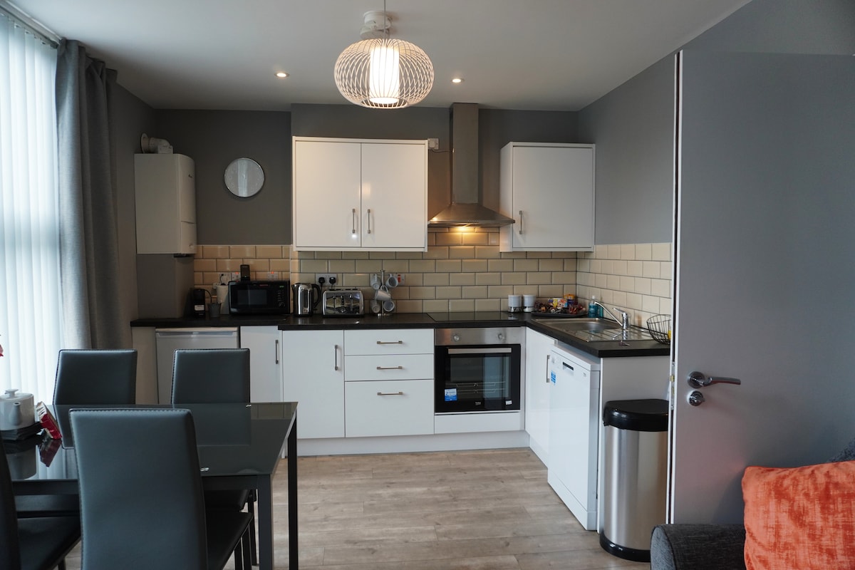 Bel appartement de 2 chambres extrêmement confortable dans le centre de Belfast. L'appartement rénové est parfait pour les touristes et les acheteurs. Certifié par l'Office du tourisme d'Irlande du Nord. - Arrivée et départ en libre-service - Informations fournies sur les recommandations et attractions locales - Stationnement pour 2 voitures maximum. - Aire de jeux à proximité - Lit bébé et chaise haute fournis - Tout est accessible à pied - Thé et café fournis - Haut débit et Netflix inclus - Proche des commerces et restaurants. - À 5-10 minutes à pied de l'hôtel de ville et du quartier commerçant