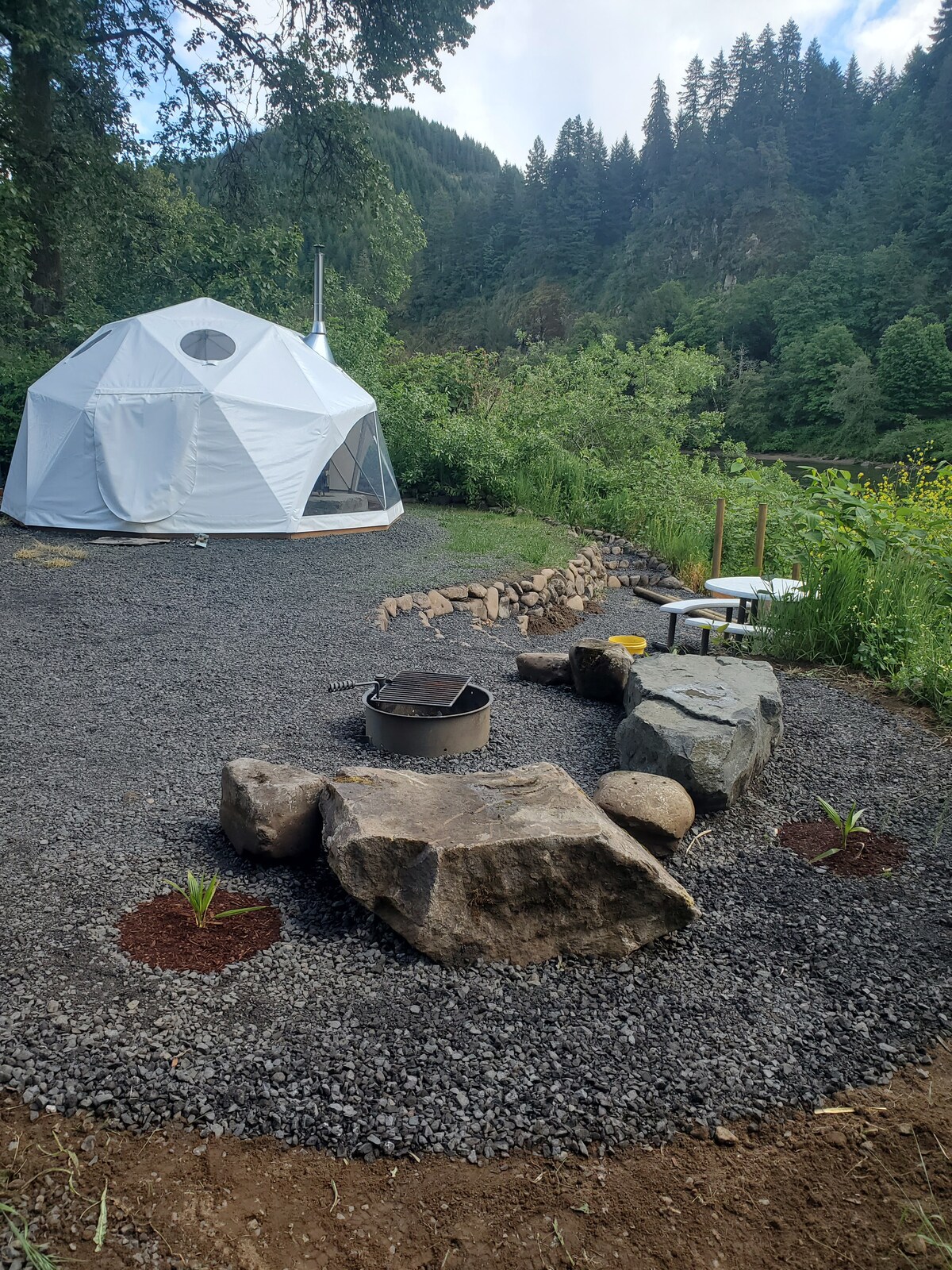 Tout ce qui est unique, dans un endroit unique, un GLAMPING DE LUXE AU BORD DE LA RIVIÈRE ! Niché dans les montagnes côtières de l'Oregon, au bord des eaux de marée intérieures. Situé à l'arrière-plan d'un petit canton rural historique, à l'abri des regards de la route battue vers/depuis l'océan Pacifique et les dunes de l'Oregon, à seulement 16 miles de Reedsport. Quai flottant toute l'année et accès à la rivière rien que pour vous, une expérience différente à chaque changement de marée, et des kayaks fournis. Loutre, aigle, phoque, poisson, etc. : un parc à thème naturel !