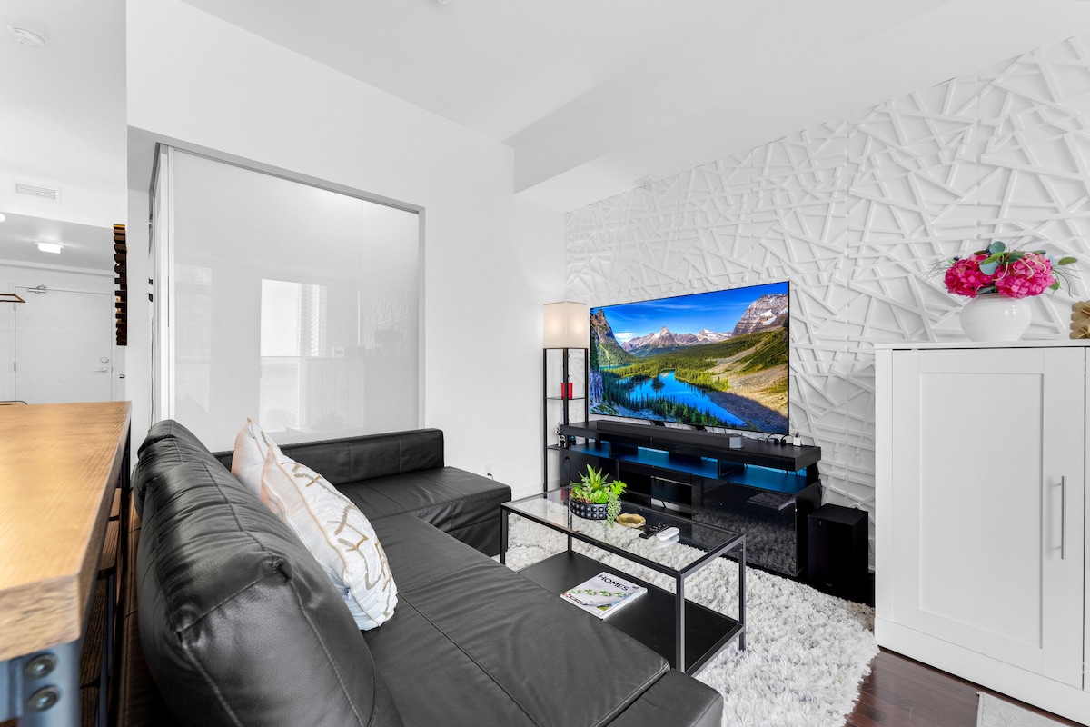 Séjournez au cœur du centre-ville de Toronto dans ce condo moderne d’une chambre à coucher, à quelques pas de la Tour CN, du Rogers Centre et du secteur riverain. Le logement comprend un lit queen confortable dans la chambre et un canapé-lit dans le salon, ce qui est idéal pour les couples ou les petits groupes. Admirez la vue sur la ville à travers les fenêtres pleine hauteur ou détendez-vous sur le balcon privé. Le condo comprend une cuisine entièrement équipée, une téléviseur intelligent, une connexion Wi-Fi haute vitesse, ainsi qu’une laveuse et une sécheuse dans l’unité. Les voyageurs ont aussi accès à une salle d’entraînement et à une piscine extérieure.