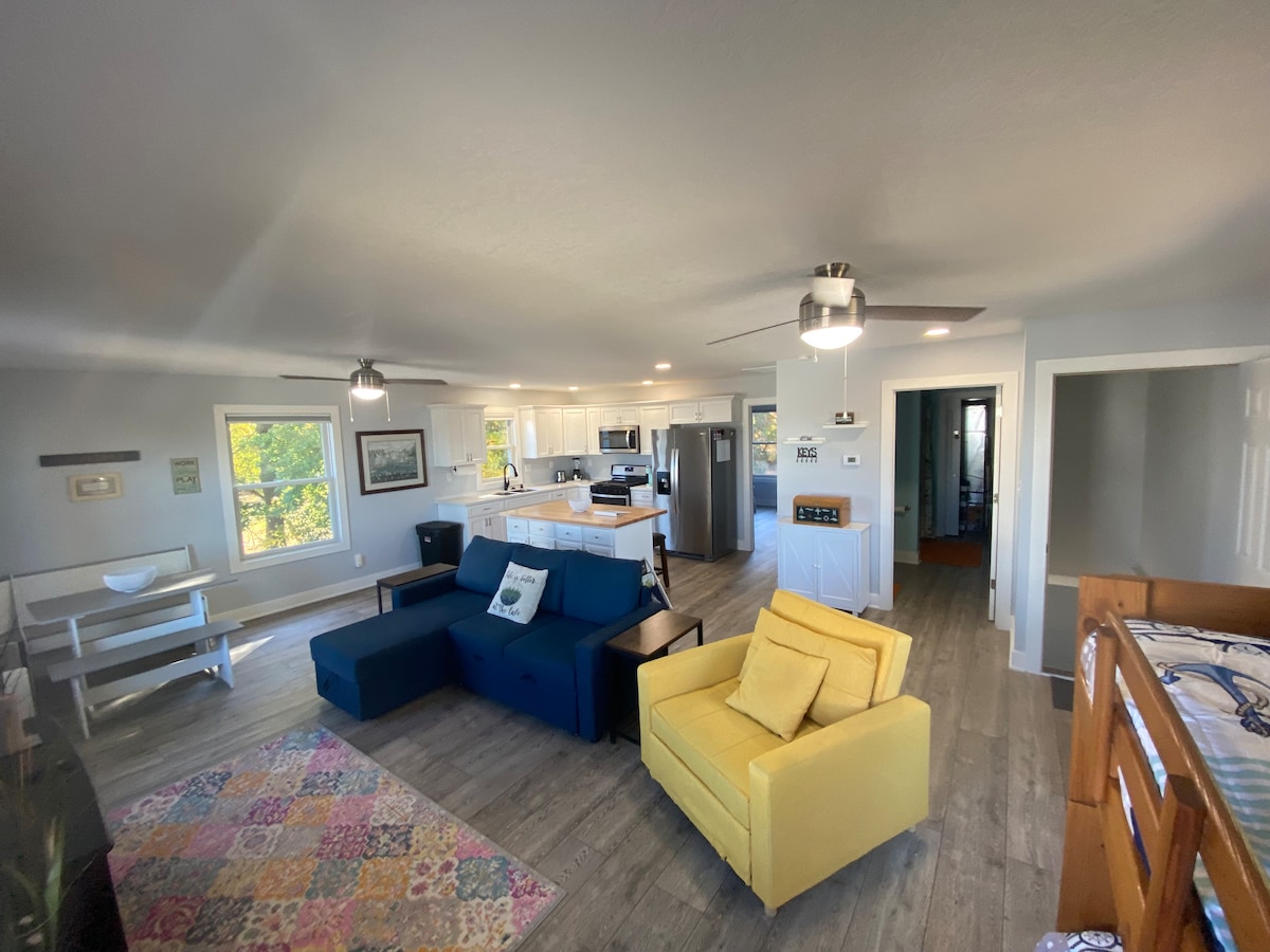 Toutes les photos datent de 2025. 4 grandes chambres, 3 salles de bain COMPLÈTES toutes séparées des chambres. À distance de marche de l'académie, du lac Max, de TOUS les restaurants et magasins à moins de 2 pâtés de maisons. Grande cour/grande terrasse avec barbecue. Lave-linge/sèche-linge, lave-vaisselle, WiFi. 1 chambre, 1 salle de bain complète en bas, pas d'escaliers pour les personnes âgées ou ayant des besoins spéciaux. Location pour 1 nuit en semaine UNIQUEMENT autorisée en hiver. Climatisation centrale + unités de chambre supplémentaires si quelqu'un veut dormir encore plus frais. Leader annuel des locations de retour à Culver pour une bonne raison. Abordable.
