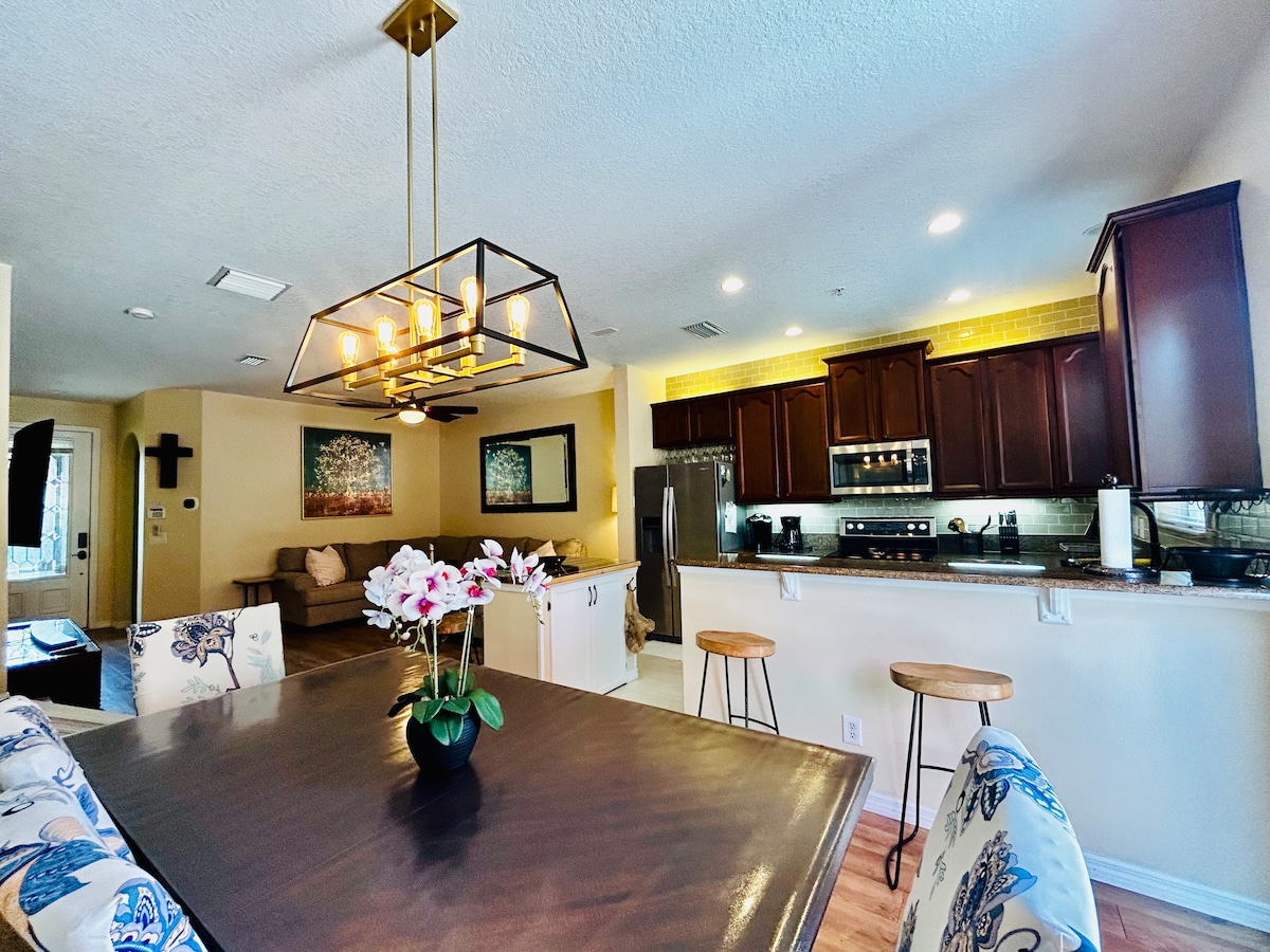 Modern Universal Orlando est une maison élégante et familiale avec 2 chambres et 2 salles de bain qui est située juste à l'extérieur des portes d'Universal Studios Florida. Avec 2 lits et un canapé convertible, il y a beaucoup de place pour une famille de 6 personnes pour s'installer lors de la visite des parcs. De porte à porte, il y a une promenade panoramique de 1 mile/15 minutes jusqu'aux portes d'Universal Studios. Une cuisine complète, une cour arrière clôturée et 2 patios vous offrent tout le confort et la fonctionnalité d'une maison avec un emplacement central !