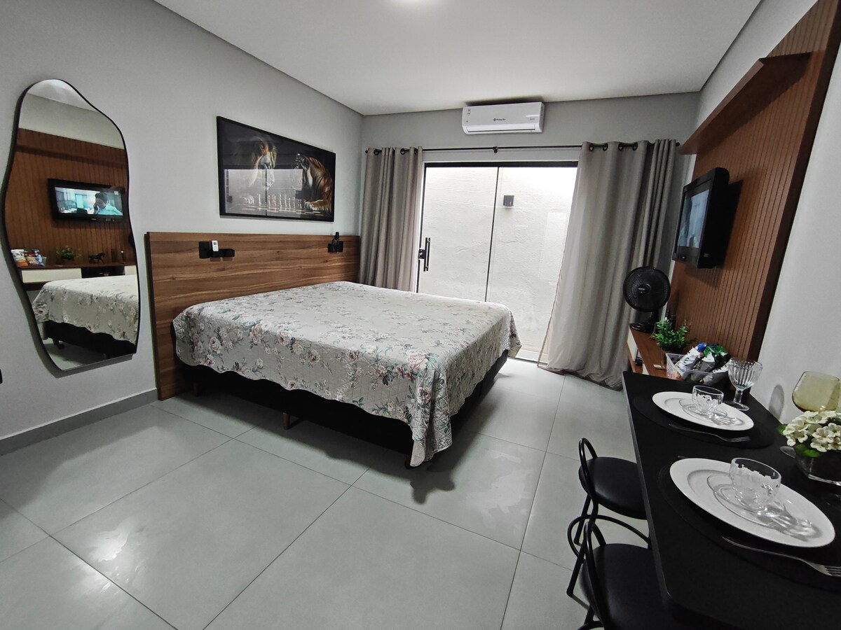 Profitez d'une expérience unique au BERACA PRIME à Londrina! Studio complet au design moderne, éclairage LED sophistiqué et entièrement équipé. Détendez-vous avec notre ensemble de literie et de salle de bain haut de gamme. Situé à Rua Belo Horizonte 1177, Centro, à quelques pas (850 m) de la promenade et à proximité (1,5 km) du magnifique lac Igapó. Votre havre de style et de fonctionnalité! 🏡💡