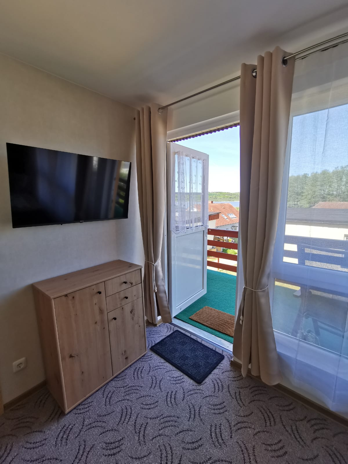 Entièrement en bois local et avec un équipement et un art très individuels, le chalet côtier douillet se présente en bordure de la réserve naturelle de Stettiner Haff. Quoi de plus agréable que de profiter de la vue dégagée sur le Haff après une séance de sauna relaxante dans la maison au coin du feu. Avec un peu de chance, vous verrez des pygargues à tête blanche ou des grues qui passent la nuit sur le lac de Szczecin, à 900 m.