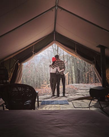 Il y a 2 semainesChristopher and Amanda were excellent hosts. The experience over two nights was memorable and one of a kind! Amanda was kind enough to install a new stove before our arrival and coordinate a last minute sauna session! Christopher checked on us constantly and took the time to have nice conversations on multiple occasions. He took our bags up to our site on an off-road vehicle (very thoughtful!) and ensured we had everything we needed during our visit. The site offers lots of amenities, including trails, clear stargazing and complimentary firewood! It’s very private and distant from others. It’s definitely a step up from your usual glamping experience - with a an outdoor community shower, private workouts, a family who lives and cares for the property, and more :) Worth the trip to the very friendly side of the mountains.