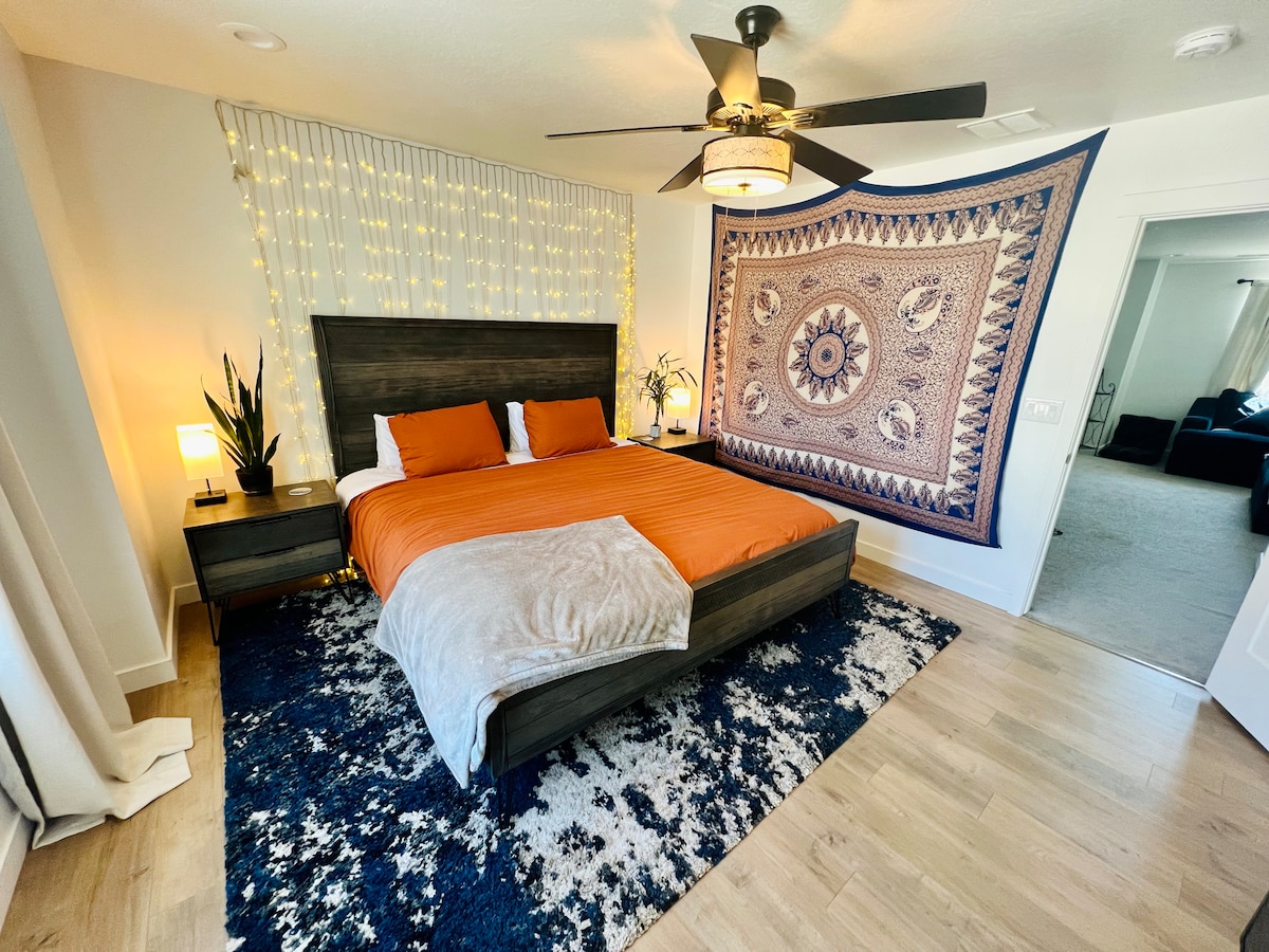 Niché au cœur des montagnes Wasatch, notre havre de paix vous accueille dans la vallée de l'Utah. L'entrée privée vous emmène dans un espace de vie propre et ouvert avec une cuisine complète, des portes françaises menant à la chambre avec lit king size. Notre maison est située dans un quartier calme et bien établi. De nombreux parcs, canyons et centres commerciaux à proximité. À 30 min de SLC, BYU, stations de ski et lacs. Venez vous reposer et vous détendre au B&B de Ryan et Rachel, et profitez d'une douce retraite. Consultez « Autres infos » pour en savoir plus sur le bruit.