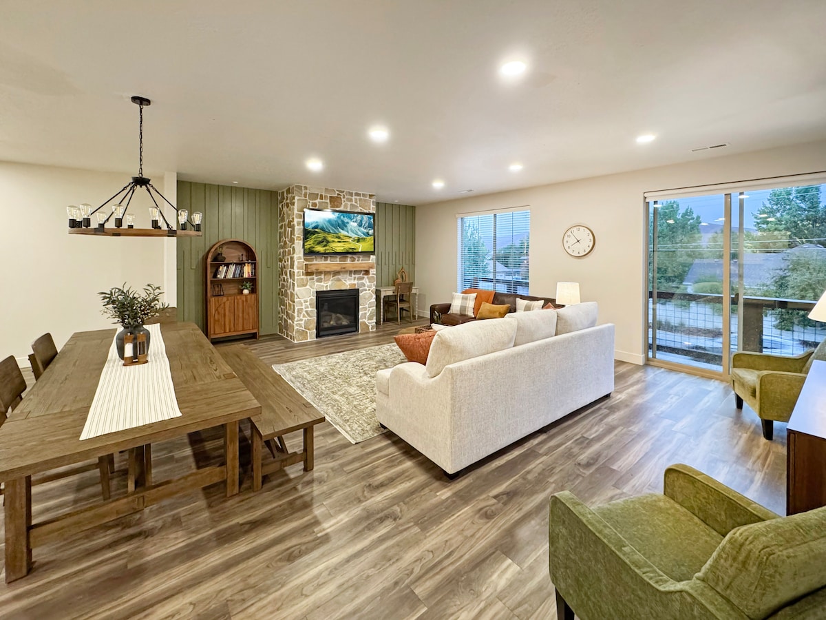 Appartement de 3 chambres (2 lits Queen Size, 1 lit King Size) et 2 salles de bain situé dans la ville de montagne de Heber City, Utah. Il y a beaucoup de place pour vous ressourcer et vous détendre avec 1 500 pieds carrés pendant que vous vous reposez entre les projections de Sundance, le ski ou les aventures en VTT. L'aménagement ouvert et la cuisine entièrement équipée facilitent la préparation et la dégustation de repas ensemble. Les autres équipements de notre maison comprennent un garage pour une voiture et un lave-linge/sèche-linge. Laissez-nous vous accueillir pour vos prochaines vacances dans l'Utah pittoresque !