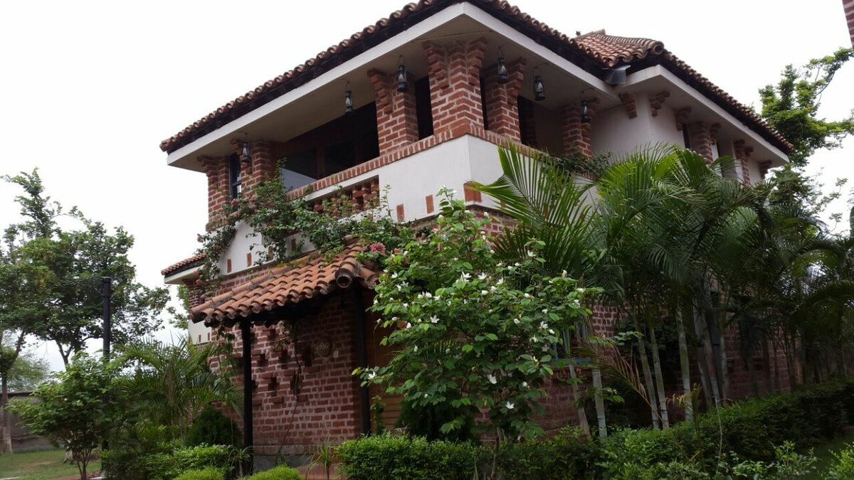 Belle villa artisanale de deux étages nichée au milieu d'un verger et d'un potager luxuriants où nous cultivons des fruits et des légumes toute l'année. Entourez-vous de verdure luxuriante et de fleurs abondantes dans une maison méticuleusement conçue par des artistes avec tout leur amour. Profitez du riche patrimoine culturel de Shantiniketan, Bolpur avec la forêt de Sonajhuri, la rivière Kopai et l'université Visva Bharati (fermée le mercredi), tous à moins de 10 minutes. La gare la plus proche est Prantik, également à 10 minutes.