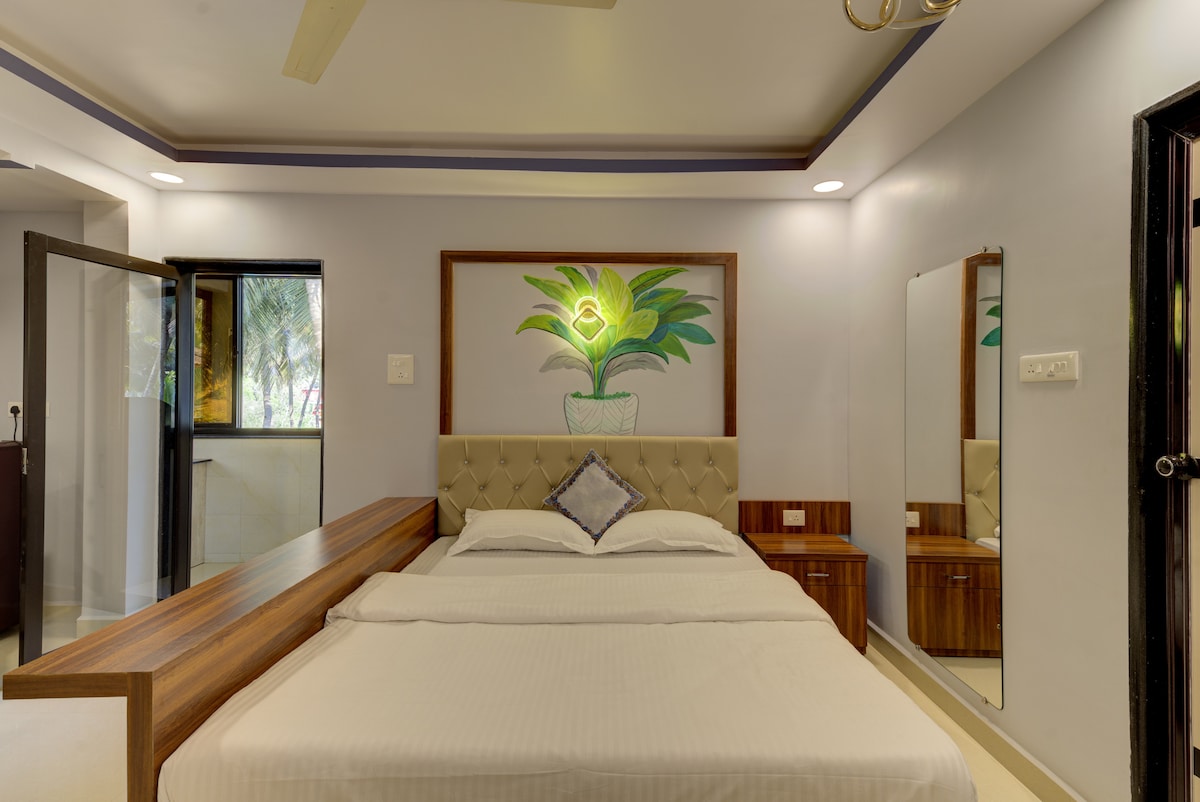 Chambre avec lit simple. Maison face à l'océan offrant une vue imprenable sur la mer avec le rivage le plus propre et paisible, bénéficiant également d'une douce brise entre les cocotiers. Il y a plus à découvrir en séjournant à la ferme de plage védique. INFORMATIONS DE BASE - Route principale - 200 m Supermarché - 500 m Centre-ville 5 km Gare ferroviaire 5 km Plage de Nirvana 2 km. Jonction de ferry à 3 km Gokarna à 30 min en voiture Cafés et restaurants à moins de 5 minutes. Sécurité et hygiène entretenues.