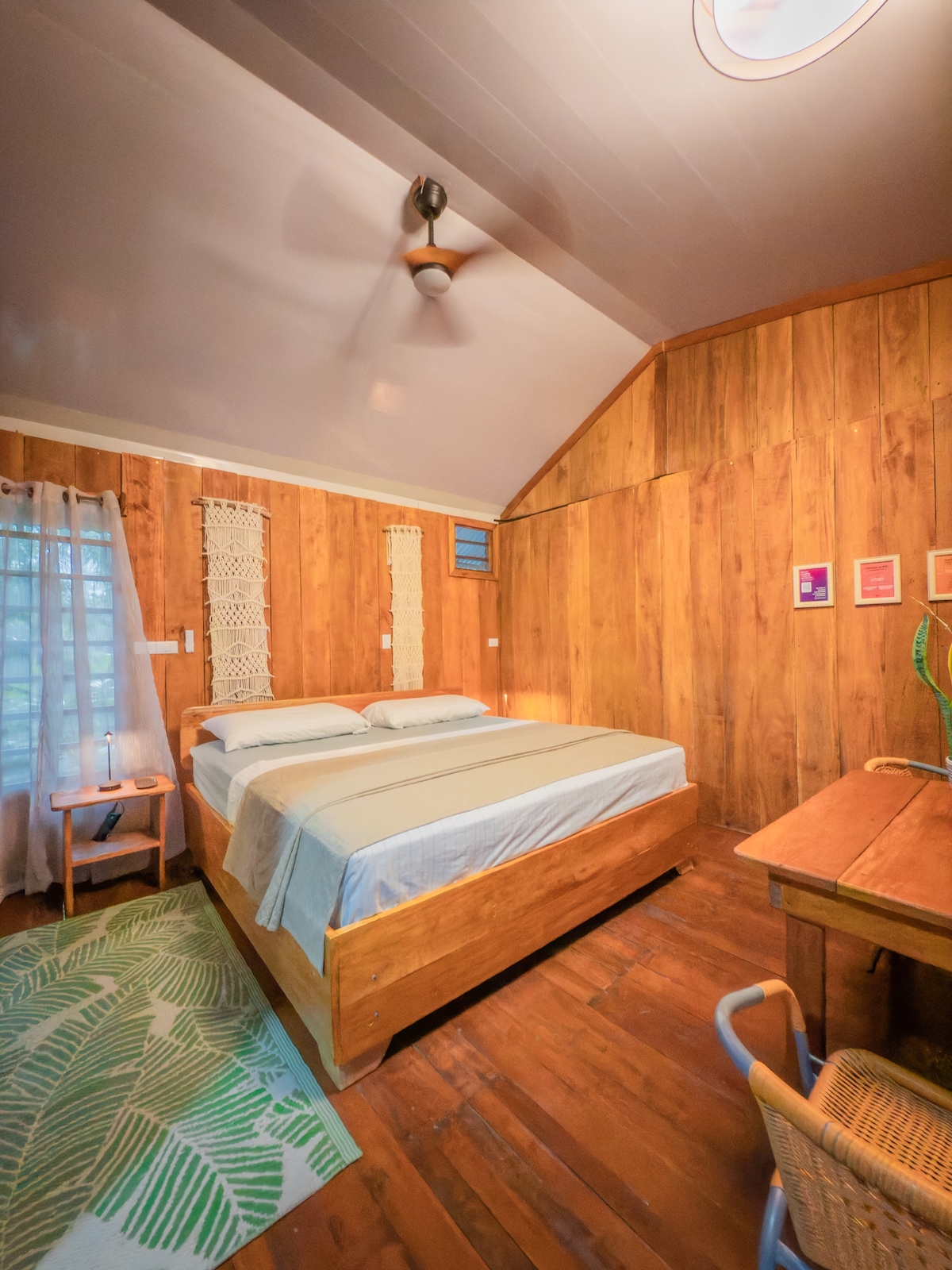 Casa Viva Barrel is a barrel-shaped cottage which provides a novel experience while staying connected to the rich Costa Rican feel and ambiance. The cottage also has a notable craftsman feel where the carpenters took great attention to detail from the shape of the structure to the hand-made furniture, and round-shaped windows that were all custom designed for a truly unique and comfortable experience. It has 2 new mattresses (Queen + Double) which can accommodate up to 4 people