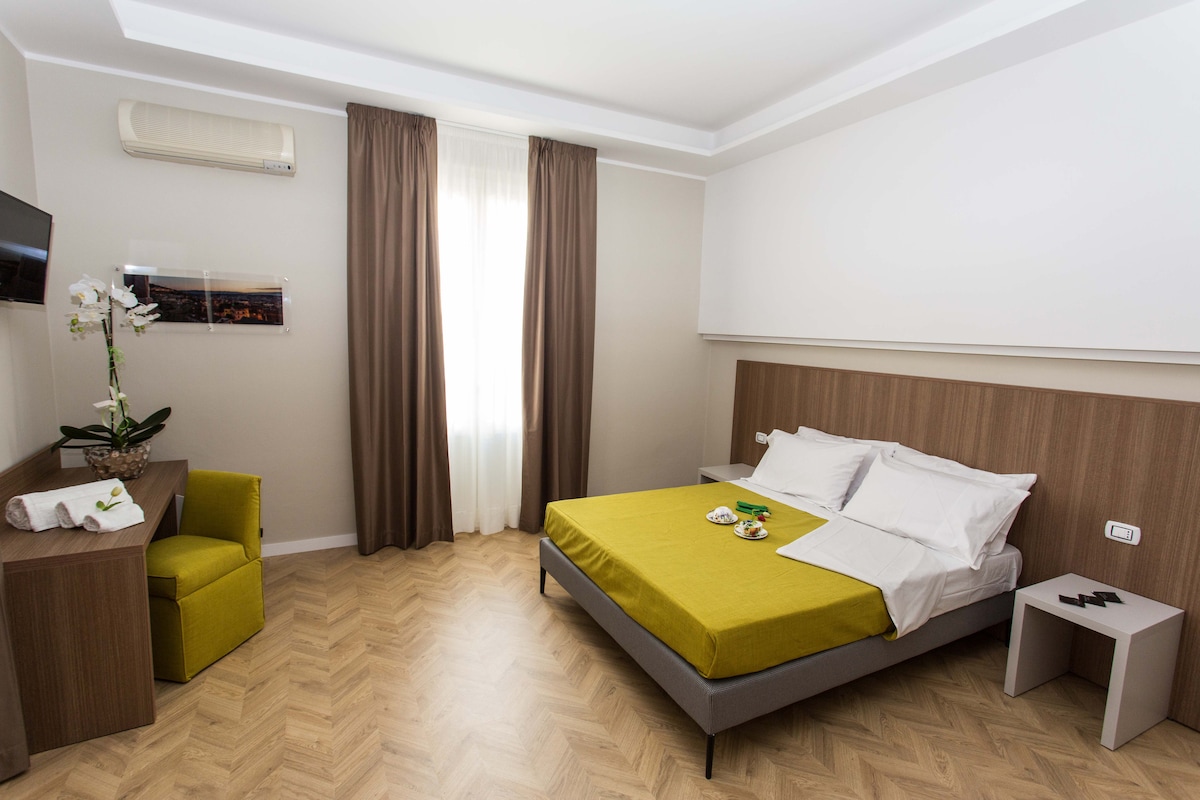 Résidence Campus - Chambre double dans un bâtiment récemment construit situé sur Corso Italia N ° 75 à côté du centre commercial CAMPUS, à proximité de l'Université de Calabre et de la sortie d'autoroute Cosenza Nord. La chambre est équipée d'une connexion Wi-Fi gratuite, de la climatisation, du chauffage autonome, d'une télévision LCD, d'un grand parking.