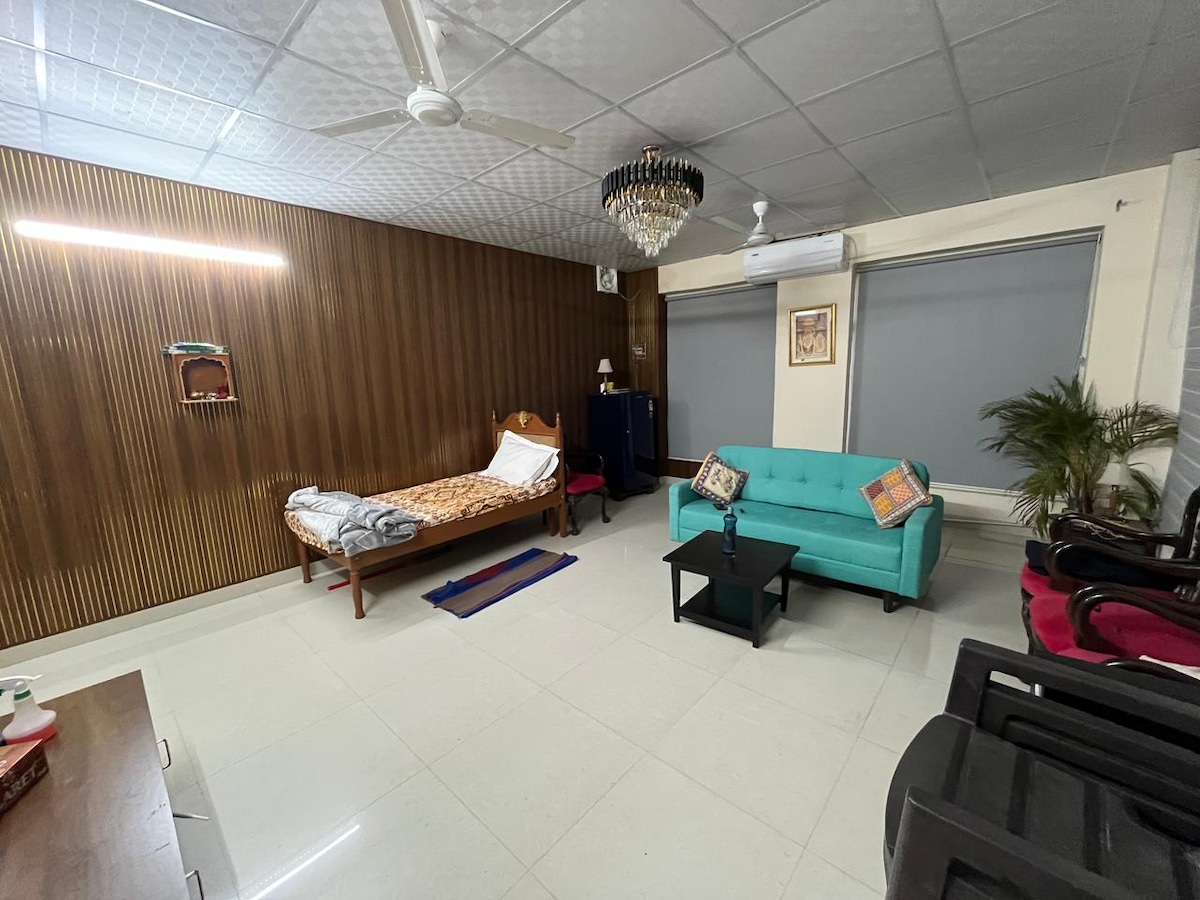 C'est un penthouse 1BHK au troisième étage, ascenseur, aéré et spacieux. Il dispose d'une entrée indépendante par une terrasse ouverte en face, ce qui ajoute à son charme. Il est à seulement 350 mètres à pied du temple d'Akshardham, l'un des endroits les plus célèbres à visiter à Jaipur. Le marché et les commerces sont accessibles à pied, toutes les options de livraison de nourriture sont également disponibles à cette adresse. La localité est résidentielle avec des soirées sereines et le toit offre un excellent séjour confortable avec beaucoup de verdure autour.