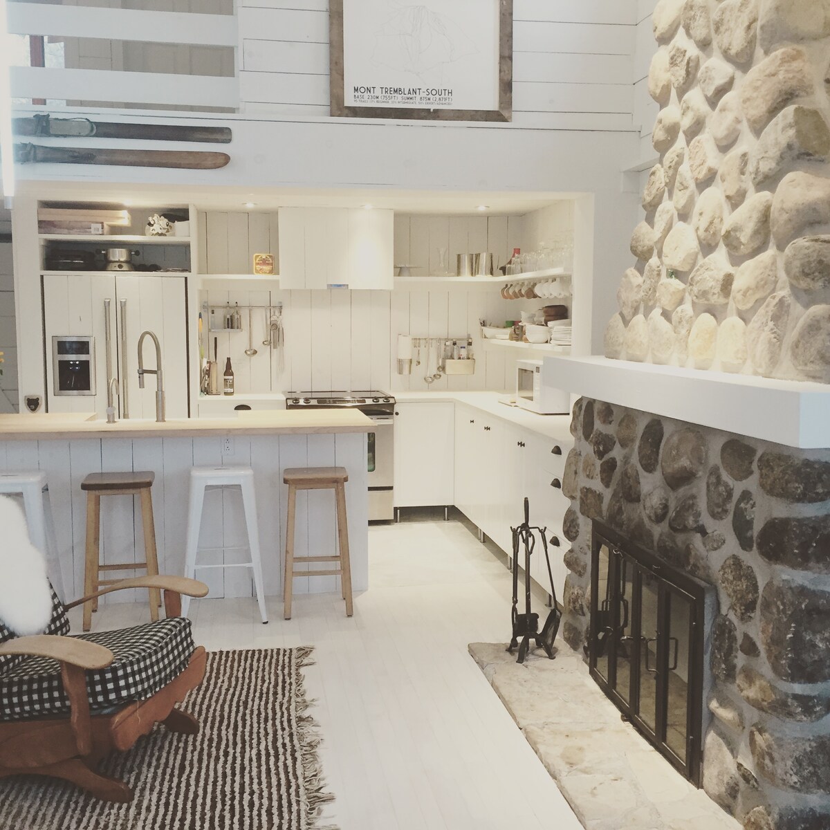Maison ouverte lumineuse et spacieuse sur le golf de la Bête avec proximité de nombreuses activités ! - 2 téléviseurs - Services de câble et de streaming comme Prime - 1 lit King Size, 1 lit Queen, 2 lits jumeaux et 1 canapé-lit - Peut accueillir 8 personnes - Cuisine entièrement équipée avec tous les appareils, vaisselle et ustensiles - Machine à café goutte à goutte et mixeur - Lave-linge et sèche-linge sur place - Cheminée intérieure - Wi-Fi rapide - Espace pour ranger les équipements de ski et de snowboard - Barbecue au propane - Grand patio avec sièges