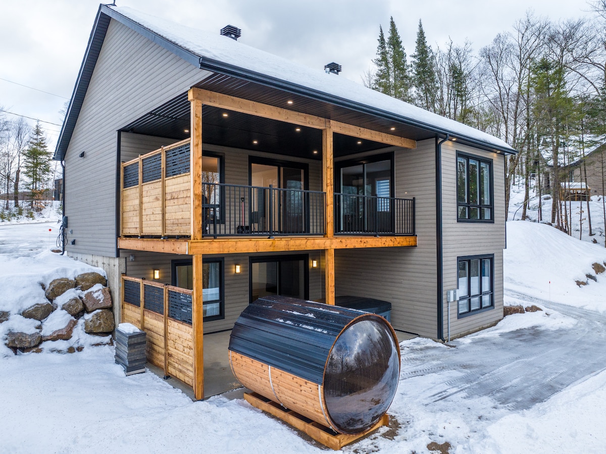 Chalet de type scandinave à Lac-Supérieur, Qc. CITQ# 300328 Situé à 300 mètres du magnifique Lac-Supérieur, ce Spahaus est une combinaison parfaite de la nature en raison de son emplacement en forêt et de sa modernité avec ses magnifiques espaces ouverts intérieurs, son jacuzzi extérieur, son sauna intérieur et bien plus encore! - Situé à 7 minutes de la station de ski Mont-Tremblant Versant nord. - Situé à 20 minutes du village Mont-Tremblant.