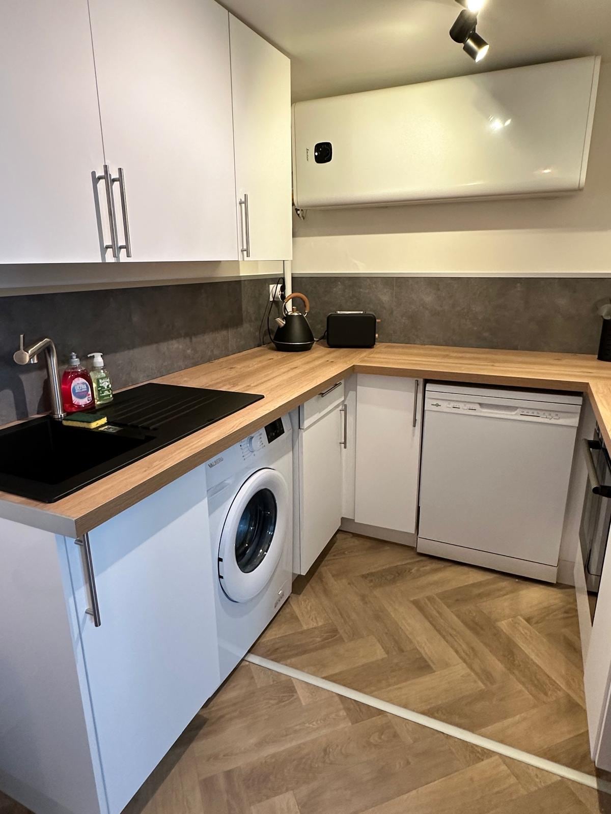 Profitez d'un logement élégant entièrement climatisé. Vous pouvez y séjourner entre amis ou en famille. Bénéficiez d'une très jolie terrasse. Cuisine: entièrement équipé, table à manger extensible Salon: joliment décoré, téléviseur, climatisation Chambre 1: Lit double, espace bureau pour travailler, porte vêtements, téléviseur, climatisation Chambre 2: 2 lits simples (possible 1 lit double), espace rangement, téléviseur, climatisation Salle de bain: douche italienne, espace rangement
