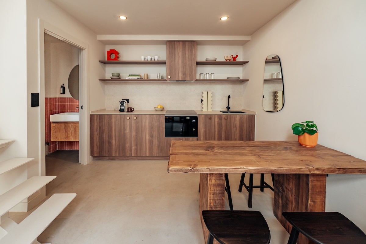 Entrez dans un bâtiment historique de 138 ans avec des murs de briques apparentes et des finitions modernes en microciment. Notre chambre comprend un lit Tempur queen-size de l'UE, assurant un maximum de confort pour nos voyageurs, et une télévision de 65 pouces sous de hauts plafonds. Profitez de la commodité d'une douche à effet de pluie tropicale écologique et d'une cuisine contemporaine magnifiquement conçue. Nous privilégions une atmosphère chaleureuse plutôt qu'une sensation d'hôtel.