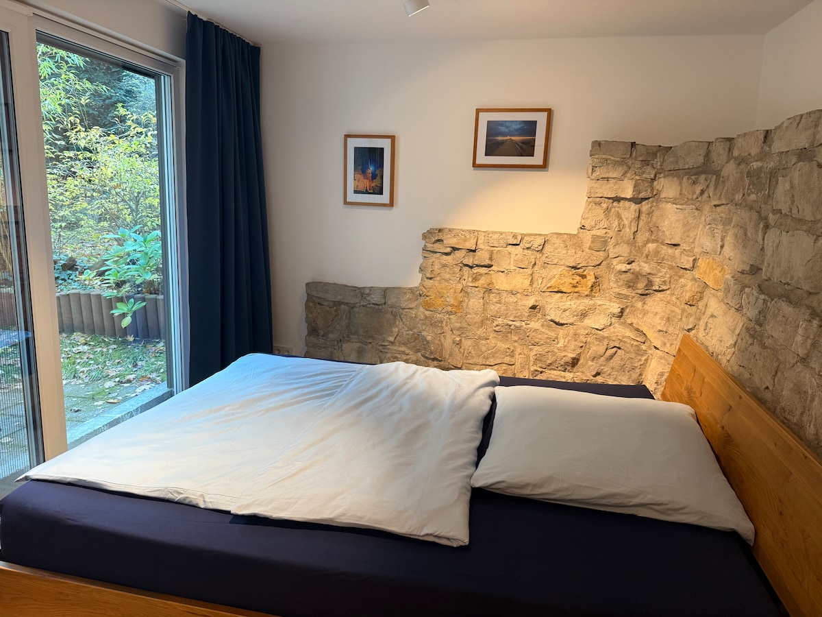 Willkommen in unserer frisch-renovierten Gartenwohnung mit Terrasse: ruhig, grün und am Wald mit großem Teich gelegen. Perfekt für entspannte Spaziergänge und dennoch nah zur Berliner Innenstadt. In 5 Minuten zu Fuß zur U-Bahn/Bus (U12) mit direkter Verbindung ins Stadtzentrum. In unmittelbarer Nähe: Olympiastadion, Waldbühne und Messegelände - für Konzertbesuche & Sportevents. Die Wohnung ist komplett neu und bietet alles, was das Herz begehrt. Auch für längere Aufenthalte bestens geeignet.