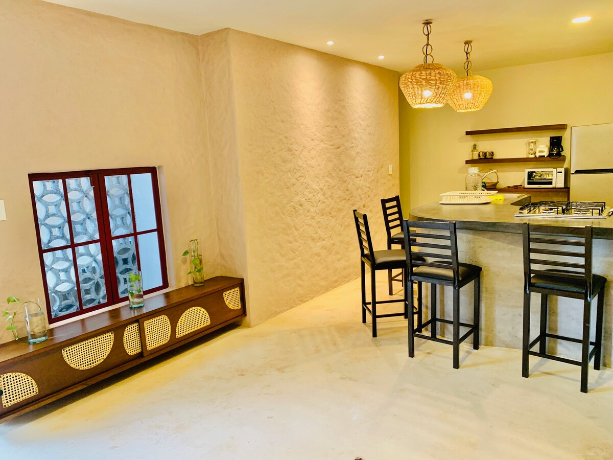 Un espace conçu pour les voyageurs aventureux; accès facile à la nature, aux arbres, aux oiseaux et aux cénotes. Autour des rues, vous trouverez le marché, la boulangerie, Oxxo, le marchand de fruits et plus encore.