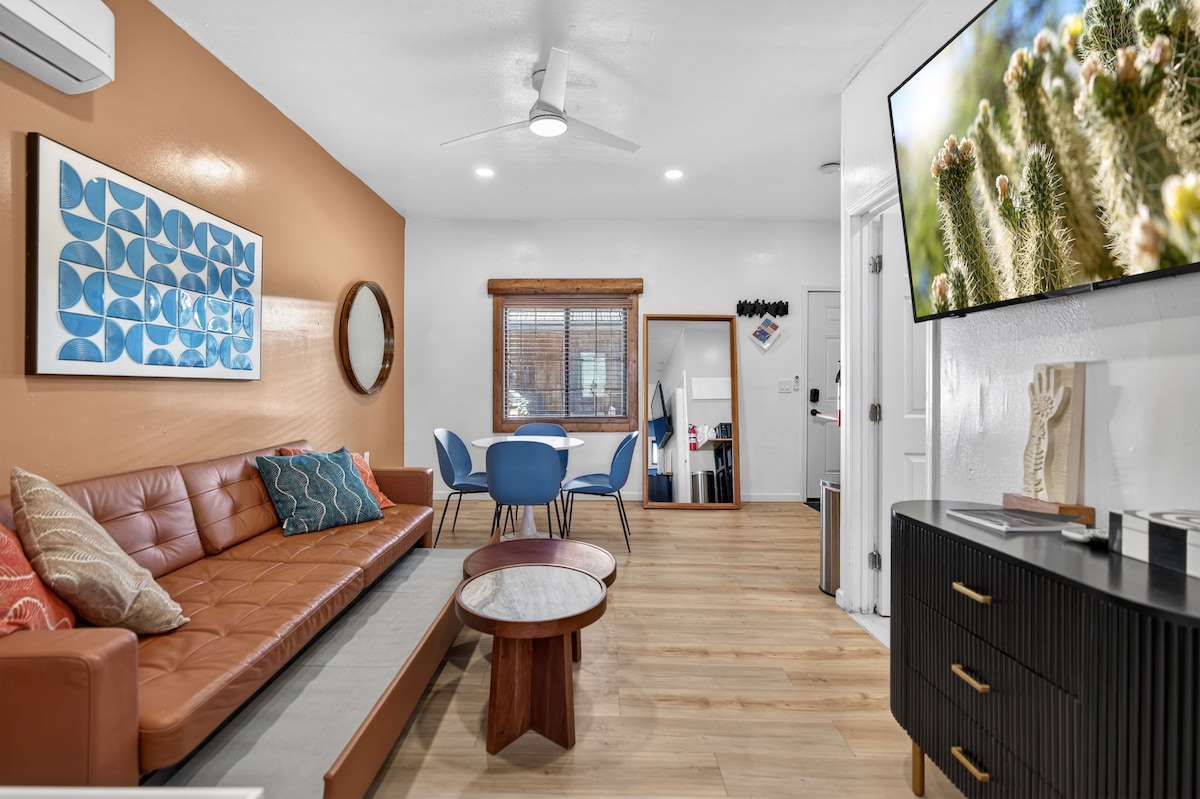 Vous allez adorer cette maison confortable et moderne. J'ai créé cet endroit pour le voyageur intelligent qui souhaite que son hébergement fasse partie de son expérience de vacances. Conçu avec soin comme une base d'accueil spéciale pour l'aventure dans le nord de l'Arizona, pensez-y comme un endroit calme pour vous ressourcer. Vos vacances viennent de bénéficier d'une mise à niveau sérieuse avec des draps doux, un canapé confortable et un espace extérieur pour regarder des films. Les restaurants et le train sont à deux pas du centre-ville. Qu'attendez-vous ?